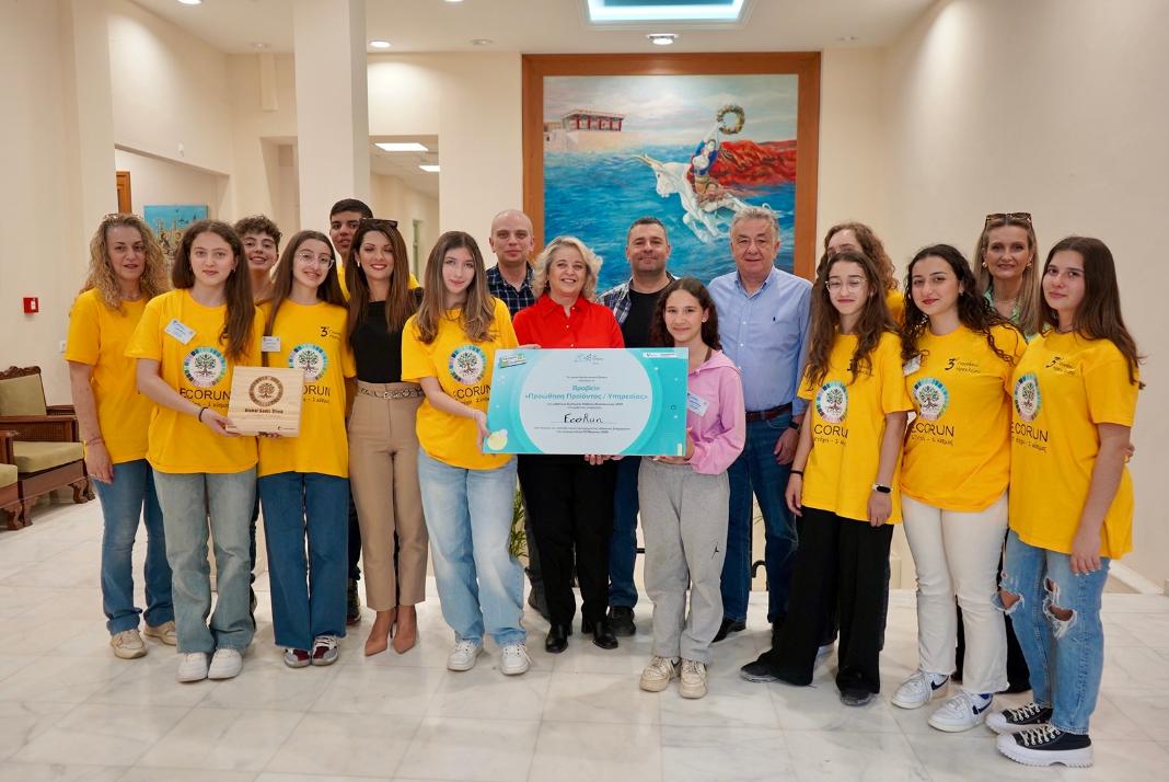 Μαθητές, εκπαιδευτικοί και γονείς του 3ου Γυμνασίου Ηρακλείου επισκέφθηκαν τον Περιφερειάρχη Κρήτης, Σταύρο Αρναουτάκη και του παρουσίασαν τη σημαντική διάκριση που πέτυχε η μαθητική τους επιχείρηση «EcoRun» στη Μαθητική Εμπορική Έκθεση του Junior Achievement Greece 2025, κατακτώντας το βραβείο για την «Καλύτερη Προώθηση Προϊόντος/Υπηρεσίας».