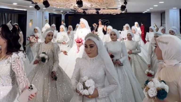 Στις εικόνες που μεταδόθηκαν, εντύπωση προκαλούν τα βαρύτιμα νυφικά και η ηλικία των νεαρών γυναικών αλλά και το γεγονός ότι από τις 100 νύφες, μόνο οι 2 ή 3 φορούσαν ανοιχτό φόρεμα στον λαιμό και τους ώμους και είχαν τα μαλλιά τους ακάλυπτα.