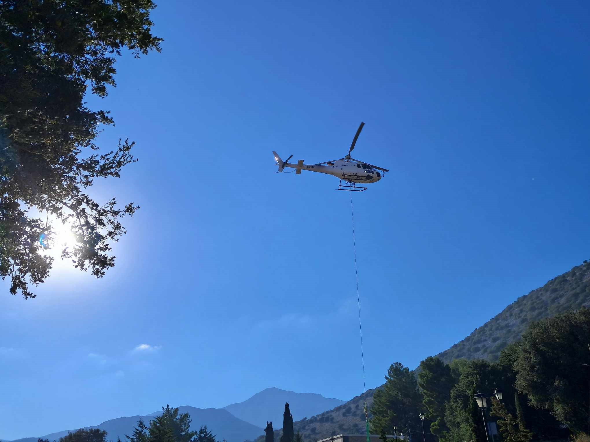Με ελικόπτερο που μισθώθηκε από τον εργολάβο ξεκίνησε το πρωί της Τετάρτης 2 Οκτωβρίου 2024 η μεταφορά των υλικών που θα χρειαστούν για τις εργασίες εντός και εκτός του Δικταίου Άντρου στο πλαίσιο του έργου «Βελτίωση Προσβασιμότητας και Αναβάθμιση Υποδομών του Δικταίου Άντρου», Υποέργο 3.