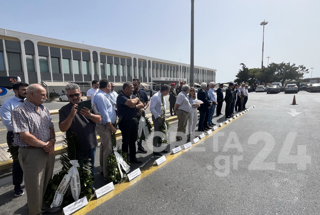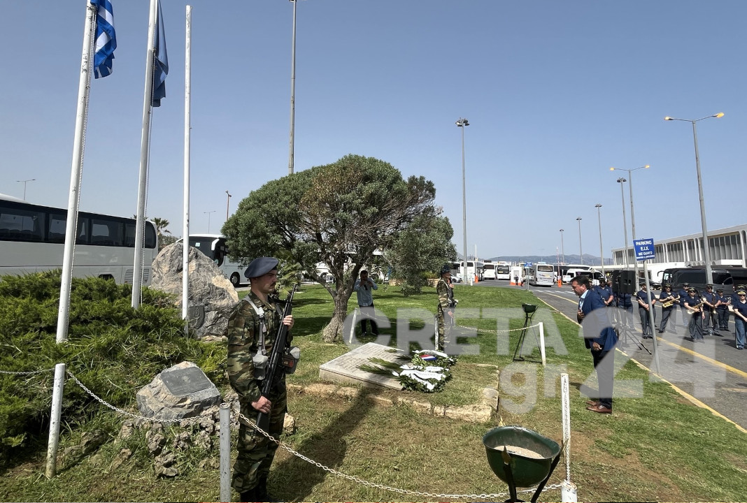 Στην τιμητική εκδήλωση στο αεροδρόμιο Ηρακλείου στεφάνι κατέθεσαν η Πρόξενος της Γαλλίας Σ. Τσαντιράκη, η Υποπρόξενος της Μ. Βρεττανίας Α. Χουρδάκη, η εκπρόσωπος της Βουλής των Ελλήνων-βουλευτής Ηρακλείου Ε. Βατσινά, ο Αντιπεριφερειάρχης Ηρακλείου Ν. Συριγωνάκης, ο Αντιδήμαρχος Ηρακλείου Αν. Περισυνάκη, η Γραμματέας της Αποκεντρωμένης Διοίκησης Κρήτης Μαρία Κοζυράκη, εκπρόσωποι της Αυτοδιοίκησης, των κομμάτων, των Στρατιωτικών Αρχών, των Σωμάτων Ασφαλείας των Έφεδρων, και Απόστρατων Αξιωματικών.