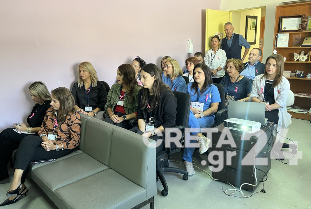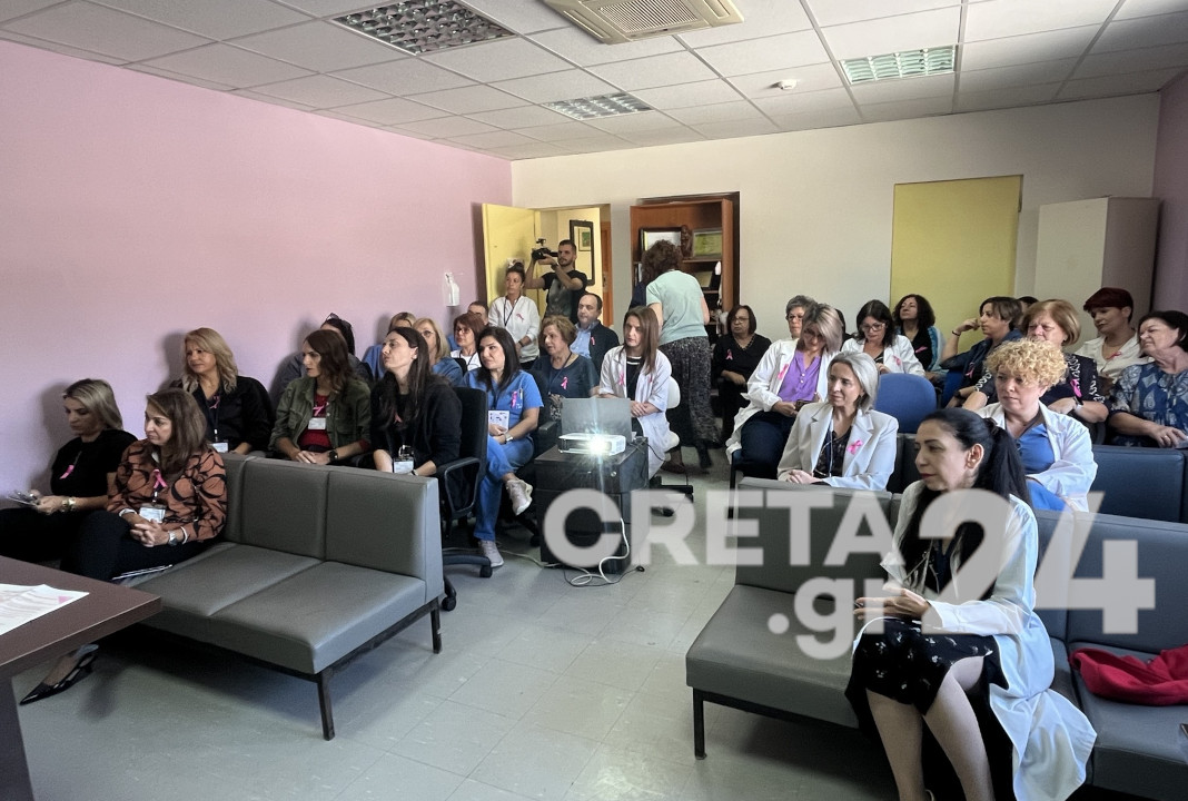 Η εκδήλωση που διοργανώθηκε από την 7η ΥΠΕ Κρήτης, το Κέντρο Υγείας Ηρακλείου και το Δίκτυο Πρωτοβάθμιων Υπηρεσιών Υγείας Μαιών -των Κρήτης πραγματοποιήθηκε στο Κ.Υ. Ηρακλείου και στόχος της εκδήλωσης ήταν η ενημέρωση και αφύπνιση του πληθυσμού για τον Καρκίνο του Μαστού και το Πρόγραμμα Προσυμπτωματικού Ελέγχου «Φώφη Γεννηματά».