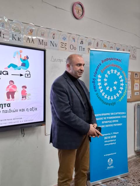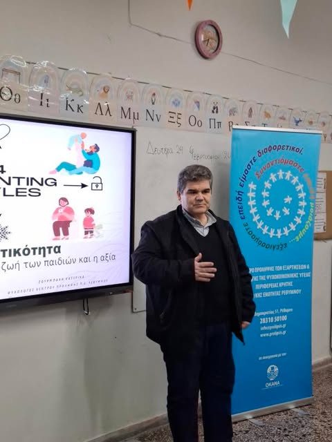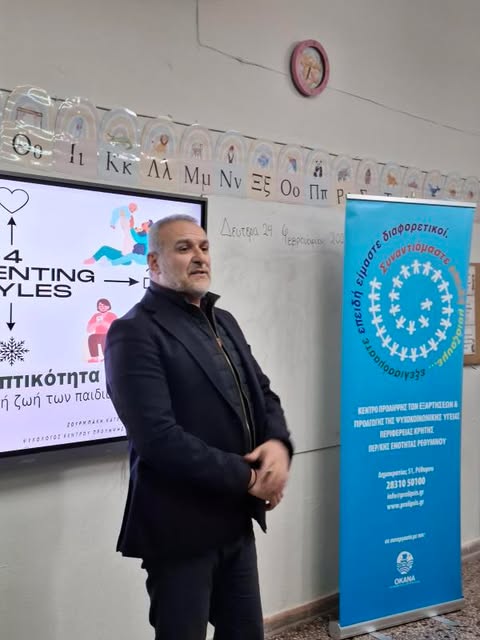 Με επιτυχία πραγματοποιήθηκε στον χώρο του Δημοτικού Σχολείου Λιβαδίων, του Δ. Μυλοποτάμου, τη Δευτέρα 24/02/2025, η ομιλία του Κέντρου Πρόληψης Π.Ε. Ρεθύμνης με θέμα «Γονεϊκή Επιτρεπτικότητα: οι συνέπειες στην ψυχική υγεία των παιδιών», με ομιλήτρια την κα Ζουρμπάκη Κατερίνα, ψυχολόγο και στέλεχος του Κέντρου.