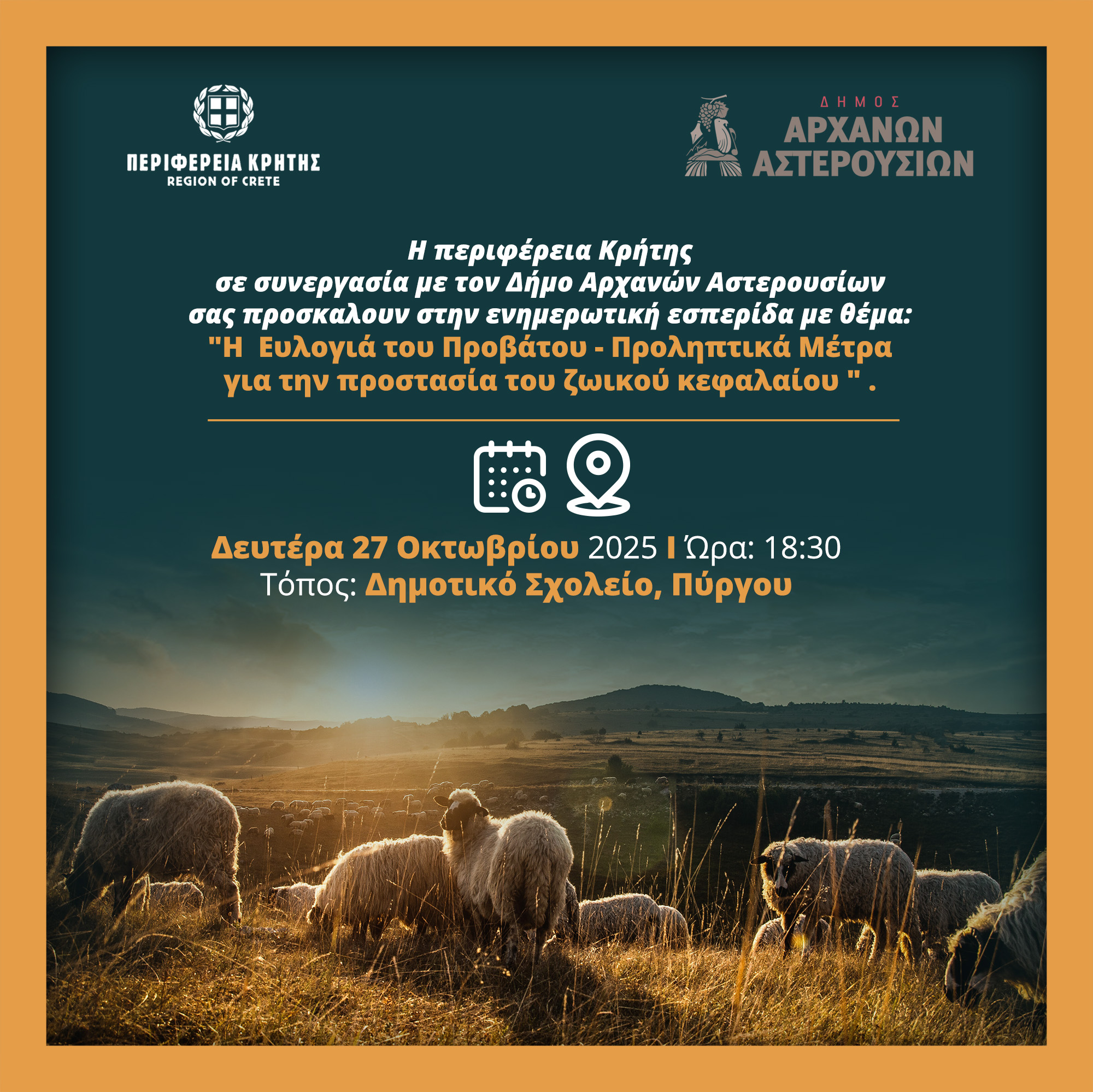 Η επόμενη ενημερωτική ημερίδα θα πραγματοποιηθεί σε συνεργασία με τον Δήμο Αρχανών – Αστερουσίων, την Δευτέρα 27 Οκτωβρίου 2025, στις 18:30, στην αίθουσα του Δημοτικού Σχολείου Πύργου. Η συμμετοχή των κτηνοτρόφων κρίνεται απαραίτητη για την αποτελεσματική θωράκιση της τοπικής κτηνοτροφίας.