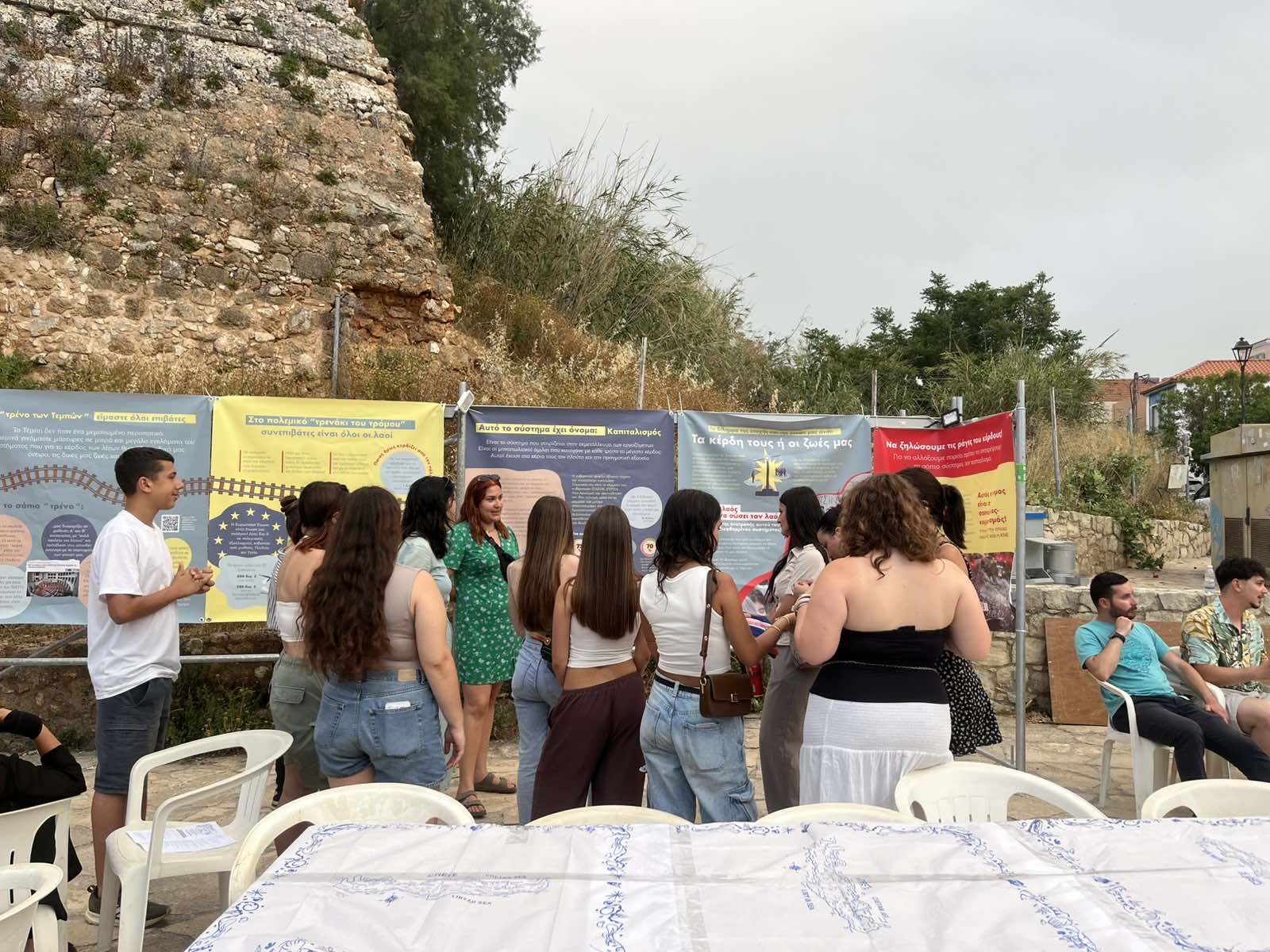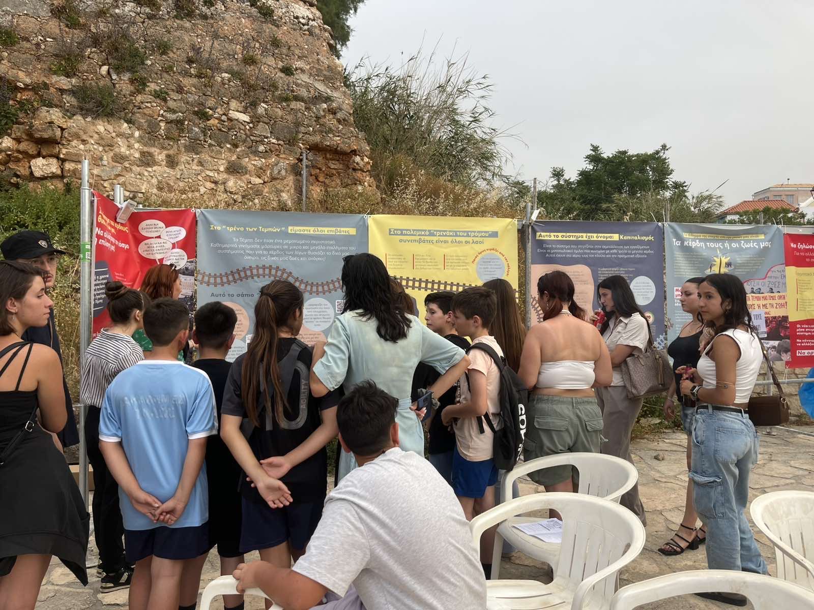 «Οι μαθητές, ξεναγήθηκαν στην κεντρική έκθεση που «στόλιζε» τον χώρο και κέντρισε μάλιστα το ενδιαφέρον τους, με τίτλο: Στην “ασφυξία” του συστήματος του κέρδους… “Οξυγόνο” ο αγώνας για την ανατροπή του! Η συζήτηση που πραγματοποιήθηκε ανέδειξε την αντίφαση ότι την ίδια ώρα που το κράτος είναι πολύ αποτελεσματικό όταν είναι να προστατευθούν τα κέρδη των λίγων, εμφανίζεται ανίκανο για ικανοποιηθούν οι ανάγκες των πολλών.