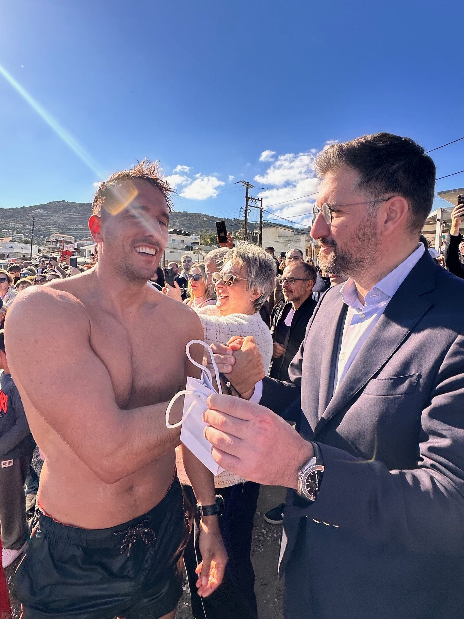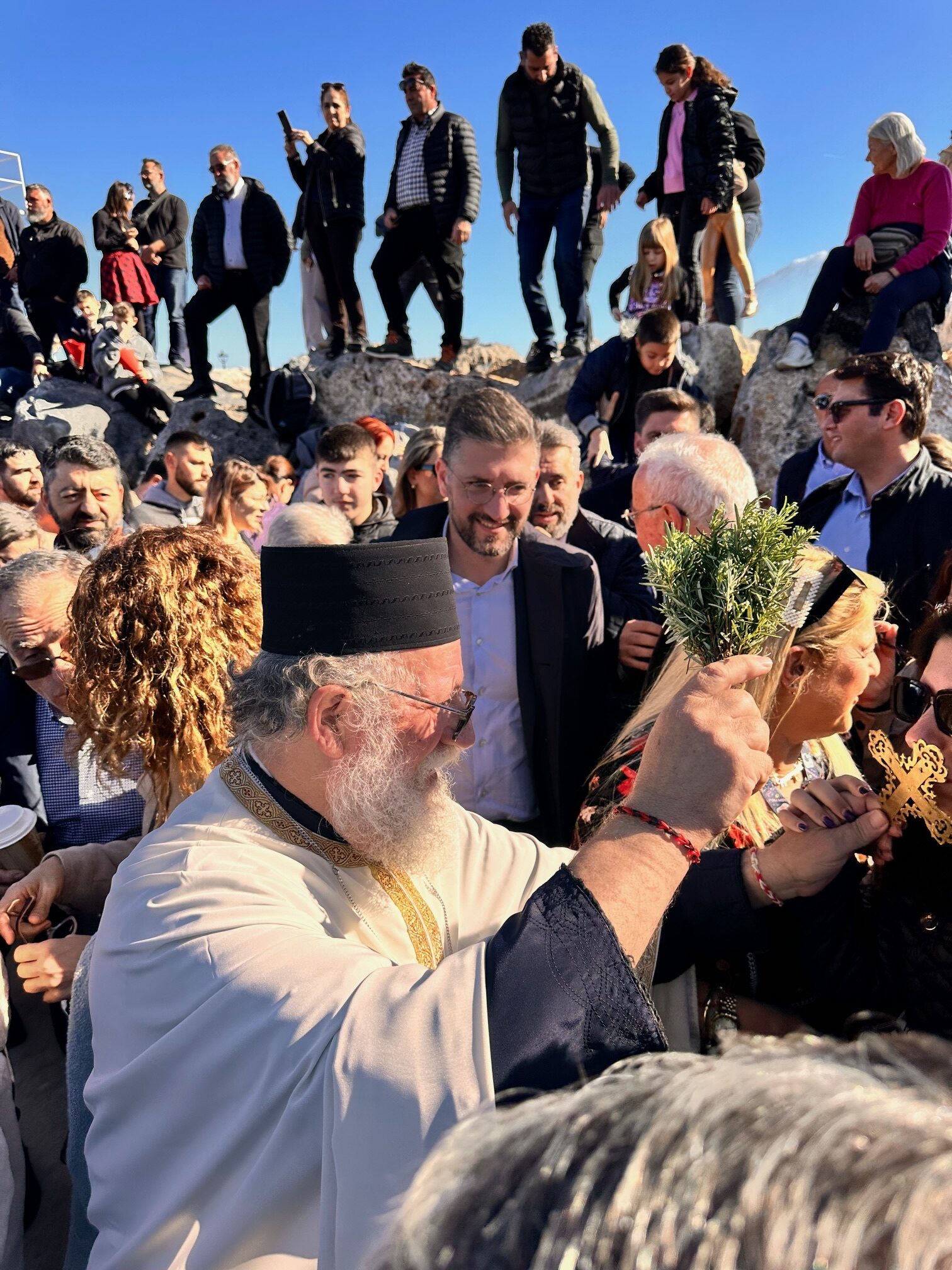Κατά τη διάρκεια της τελετής, ο Δήμαρχος συνεχάρη τους κολυμβητές που έπεσαν στα νερά για να πιάσουν τον σταυρό. Στους πρώτους που ανέσυραν τον σταυρό, προσέφερε έναν χρυσό σταυρό ως συμβολικό δώρο και ευχήθηκε υγεία και ευημερία.