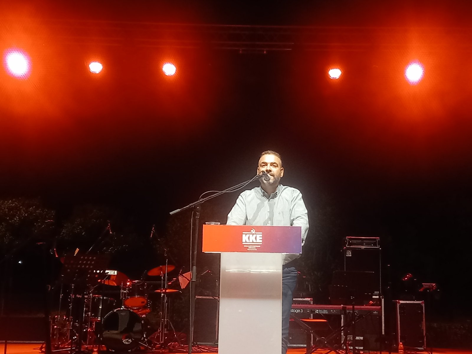 Ο Γιάννης Πρωτούλης ξεκινώντας την ομιλία ανέφερε : “To φετινό ταξίδι του Φεστιβάλ ΚΝΕ – «Οδηγητή» έφτασε στην Κρήτη, στην πόλη των Χανίων, πιο νέο και όμορφο από ποτέ παρότι συμπλήρωσε 50 χρόνια δημιουργίας και έμπνευσης, γεμάτο με τις ανατρεπτικές επαναστατικές ιδέες του ΚΚΕ.