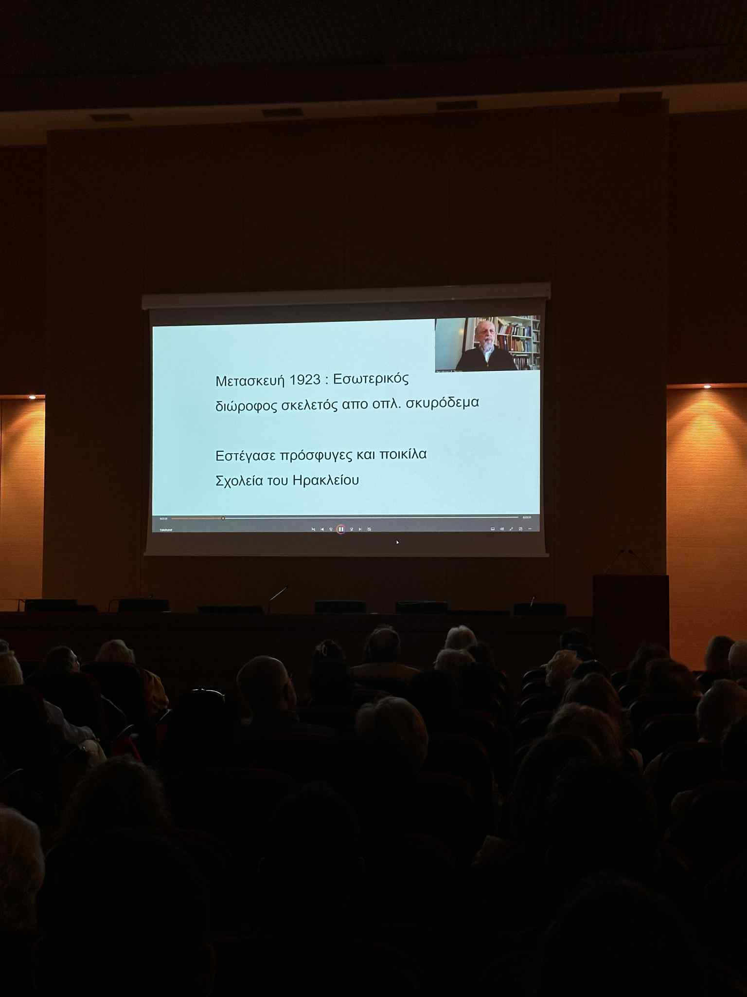 Μεγάλη ήταν η συμμετοχή του κοινού στην πρώτη ομιλία του νέου κύκλου των Μικρών Ιστοριών της Πόλης, που διοργανώνει η Αντιδημαρχία Πολιτισμού του Δήμου Ηρακλείου και η Βικελαία Δημοτική Βιβλιοθήκη, από τον Ομότιμο Καθηγητή του ΕΜΠ Θεοδόση Π. Τάσιο με θέμα «Ο Ναός του Σωτήρος».