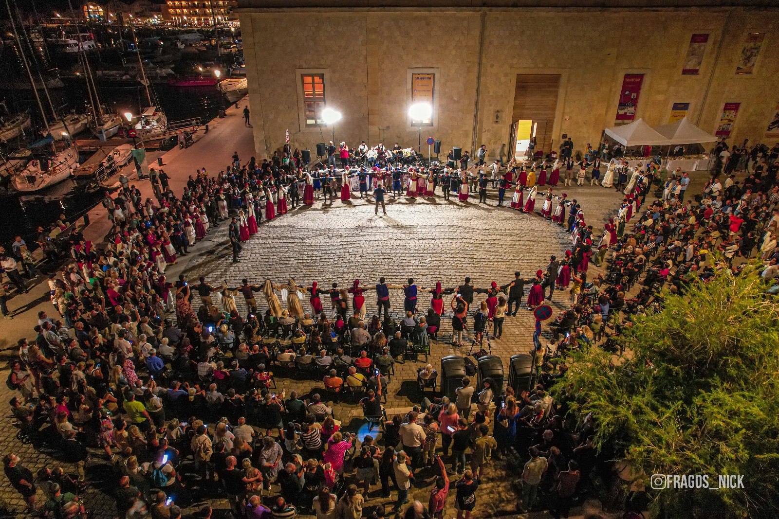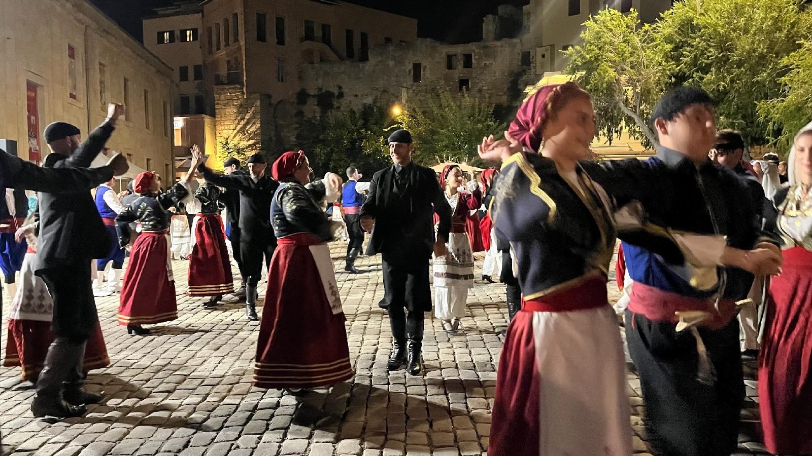 Την εκδήλωση πλαισίωσαν όλοι οι Σύλλογοι που συμμετείχαν στην Παραδοσιακή Στράτα 2024, οι οποίοι, ξεκινώντας από το Ναυτικό Μουσείο από την μια πλευρά και το Θέατρο Βλησίδη από την άλλη, διέσχισαν με μουσικές και ριζίτικα τραγούδια το Ενετικό Λιμάνι για να ενωθούν, χορεύοντας την κρητική σούστα, στην Πλατεία Κατεχάκη.
