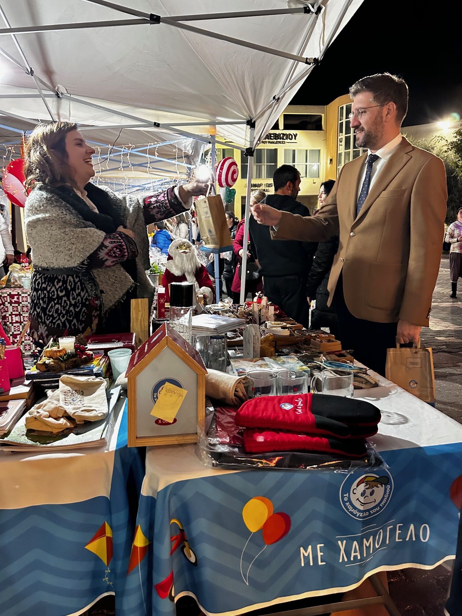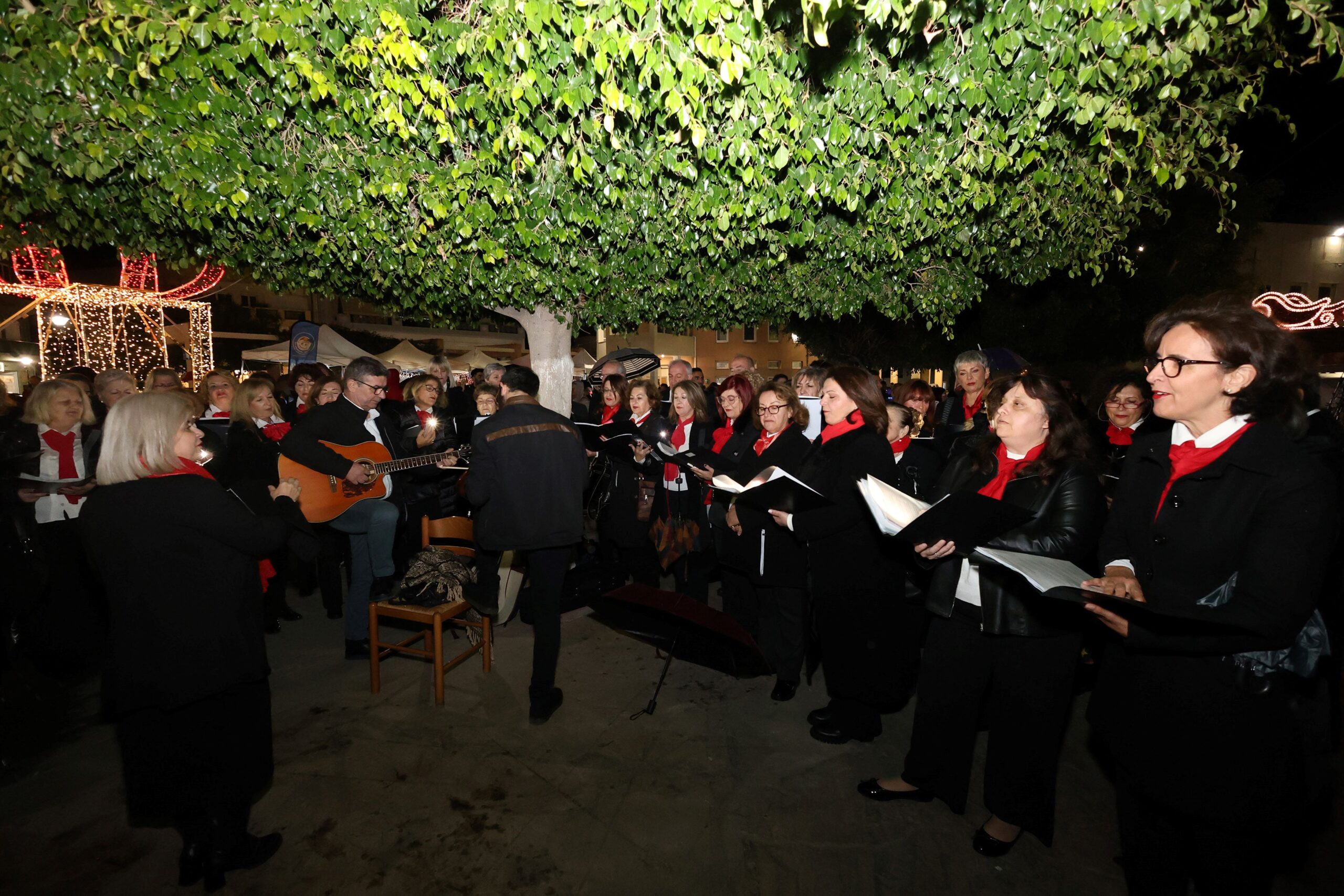 Στην πλατεία Μιχ. Κατσαμάνη βρέθηκε από νωρίς ο Άγιος Βασίλης που μοίρασε δώρα στα παιδιά, προσθέτοντας χαρά και ζεστασιά στη βραδιά, ενώ χριστουγεννιάτικα παζάρια από το «Χαμόγελο του Παιδιού» και τους Συλλόγους Γονέων και Κηδεμόνων σχολείων του Δήμου προσέφεραν όμορφες δημιουργίες και ιδέες για δώρα.