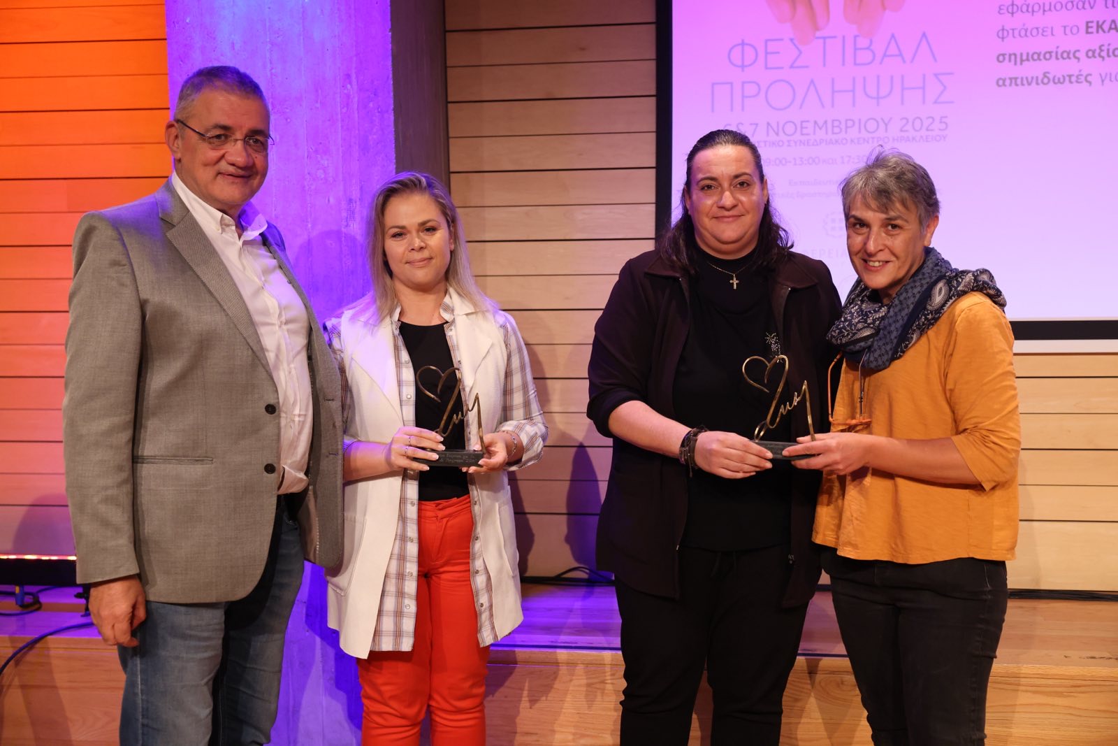 Ιδιαίτερα συγκινητικές στιγμές εκτυλίχθηκαν κατά τη διάρκεια της τελετής έναρξης, όταν τιμήθηκαν από την Περιφέρεια Κρήτης φορείς, εθελοντικές ομάδες και πολίτες που με το έργο και την προσφορά τους κάνουν πράξη το μήνυμα της πρόληψης και της αλληλεγγύης.