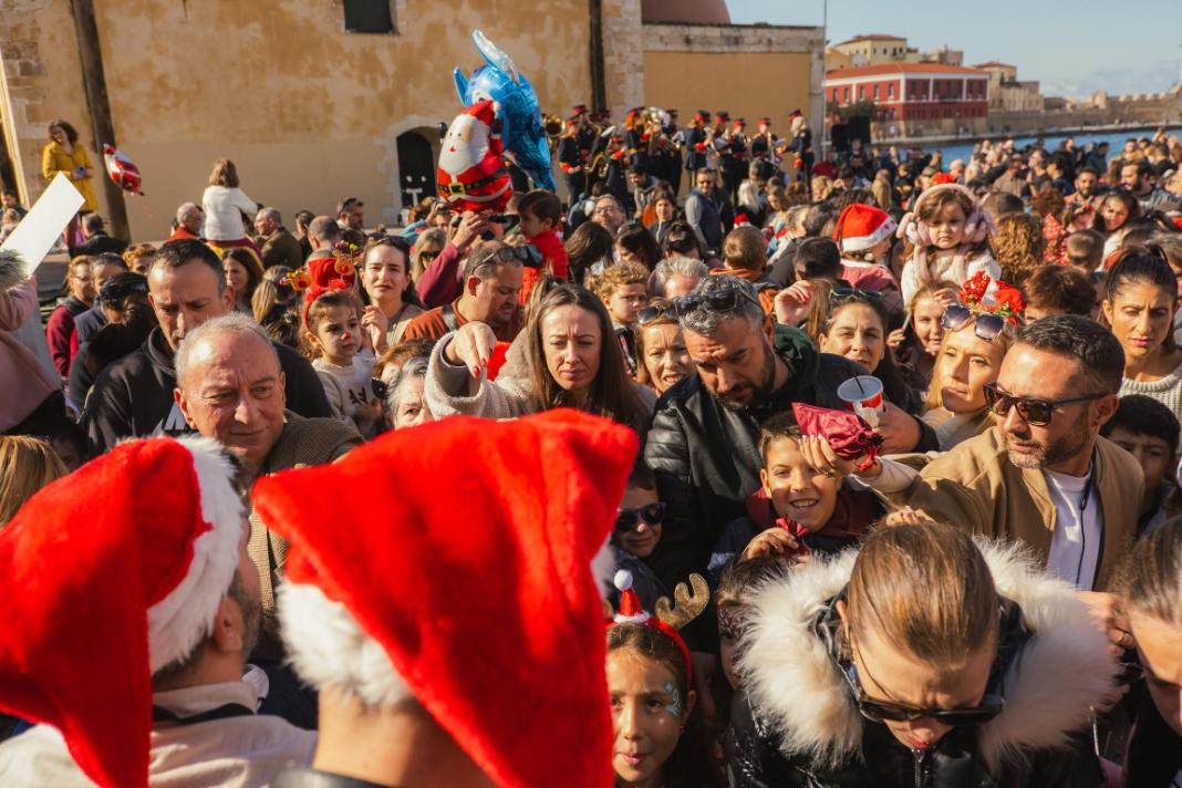Με τη βοήθεια της συμμορίας του Αϊ-Βασίλη, δηλαδή των εκατοντάδων παιδιών που βρέθηκαν χθες στο Ενετικό Λιμάνι Χανίων, σώθηκαν και φέτος τα Χριστούγεννα. Οι μικροί φίλοι του Αϊ-Βασίλη ακολούθησαν με ανυπομονησία το ξέφρενο ταξίδι του, ο οποίος, φέτος, κατέφθασε ιπτάμενος στα Χανιά με μηχανοκίνητο paraglide.