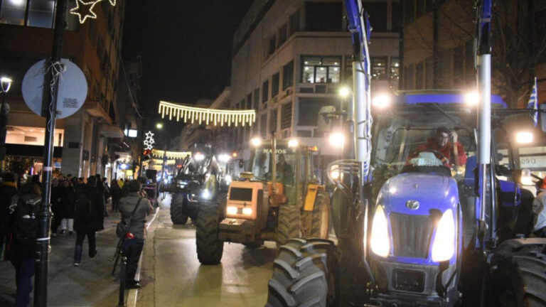 Σε νέα κινητοποίηση προχώρησαν το βράδυ της Δευτέρας οι αγρότες του μπλόκου της Νίκαιας, συνεχίζοντας τον αγώνα τους με πορεία τρακτέρ στο κέντρο της Λάρισας.