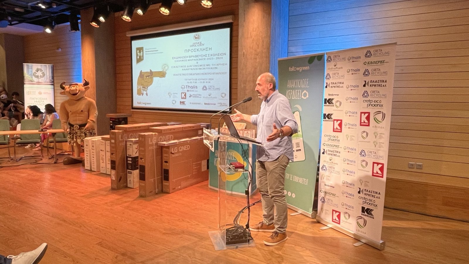 Τα 35 σχολεία που ξεχώρισαν από όλες τις εκπαιδευτικές βαθμίδες βραβεύθηκαν με 8 τηλεοράσεις, 8 λάπτοπ, 12 τάμπλετ και 7 ηχεία, δώρα τα οποία θα εμπλουτίσουν τον εξοπλισμό των σχολικών μονάδων. Σε όλα τα συμμετέχοντα σχολεία δόθηκαν έπαινοι συμμετοχής και σε όλους τους δωροθέτες απονεμήθηκαν αναμνηστικές πλακέτες για την πολύτιμη προσφορά τους στη σχολική κοινότητα του Δήμου Ηρακλείου. Κατά τη διάρκεια της εκδήλωσης, οι μαθητές είχαν επίσης την ευκαιρία να συμμετάσχουν και στα εκπαιδευτικά περιβαλλοντικά παιχνίδια που διοργάνωσε ο Δήμος Ηρακλείου με την υποστήριξη της Followgreen.