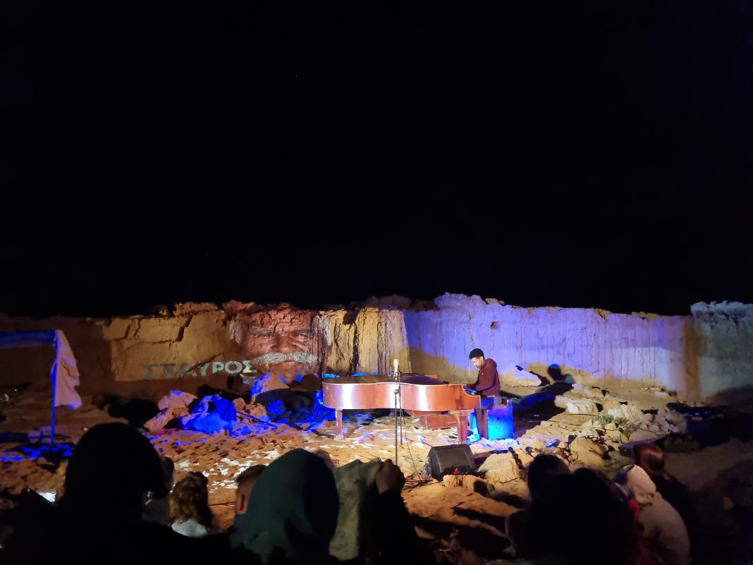 Στη συνέχεια στο μαγευτικό χώρο του αρχαίου λατομείου, κάτω από το φως του φεγγαριού και με φόντο το επιβλητικό βουνό του Σταυρού, παρουσιάστηκε η βραβευμένη θεατρική παράσταση Lemon σε μία παράσταση αλληλεγγύης για τον αγώνα κατοίκων και επισκεπτών για την προστασία του Σταυρού. Με τις εκπληκτικές ερμηνείες των ηθοποιών Μελαχρινού Βελέντζα και Γιώργου Δρίβα ξεδιπλώθηκε στην άμμο και στα βράχια η απίστευτη ιστορία του πιανίστα 1900, ο οποίος δεν κατέβηκε ποτέ από το καράβι στο οποίο γεννήθηκε. Ήταν μία βαθιά ανθρώπινη ιστορία που έθεσε υπαρξιακά ερωτήματα και συγκίνησε μικρούς και μεγάλους θεατές. Μετά την ολοκλήρωση της παράστασης ο ταλαντούχος Ελληνοβρετανός πιανίστας και κάτοικος Σταυρού Μάξιμος-Μιχαήλ Γεωργογιαννάκης-Ogbunigwe ερμήνευσε στο πιάνο του Lemon με μία ακαταμάχητη δεξιοτεχνία γνωστά κλασικά και σύγχρονα έργα. Ξεκίνησε με το μαγευτικό The Piano του Michael Nyman και έκλεισε με το ατμοσφαιρικό Clair de Lune του Claude Debussy. Ακολούθησε μία μοναδική μουσική εμπειρία με τη συμμετοχή της διεθνούς φήμης βιολίστριας Μαρίας Μανουσάκη και των γνωστών καλλιτεχνών Κυριάκου Σταυριανουδάκη, Στρατή Σκαράκη και Δημήτρη Κολλίντζα. Οι μουσικοί υπό των ήχων των κυμάτων της θάλασσας, τη βουή του ανέμου και με φόντο εικόνες που προβάλλονταν στα βράχια από το μαγευτικό βυθό του Σταυρού με τις θαλάσσιες χελώνες να κολυμπούν αμέριμνα στα γαλάζια νερά του, χάρισαν στους παρευρισκόμενους ένα ονειρεμένο μουσικό ταξίδι.