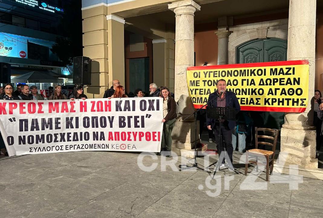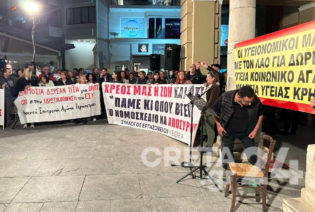 Μεγάλη κινητοποίηση για την δημόσια υγεία πραγματοποιείται αυτήν την ώρα στην Πλατεία Ελευθερίας, στο Ηράκλειο.
