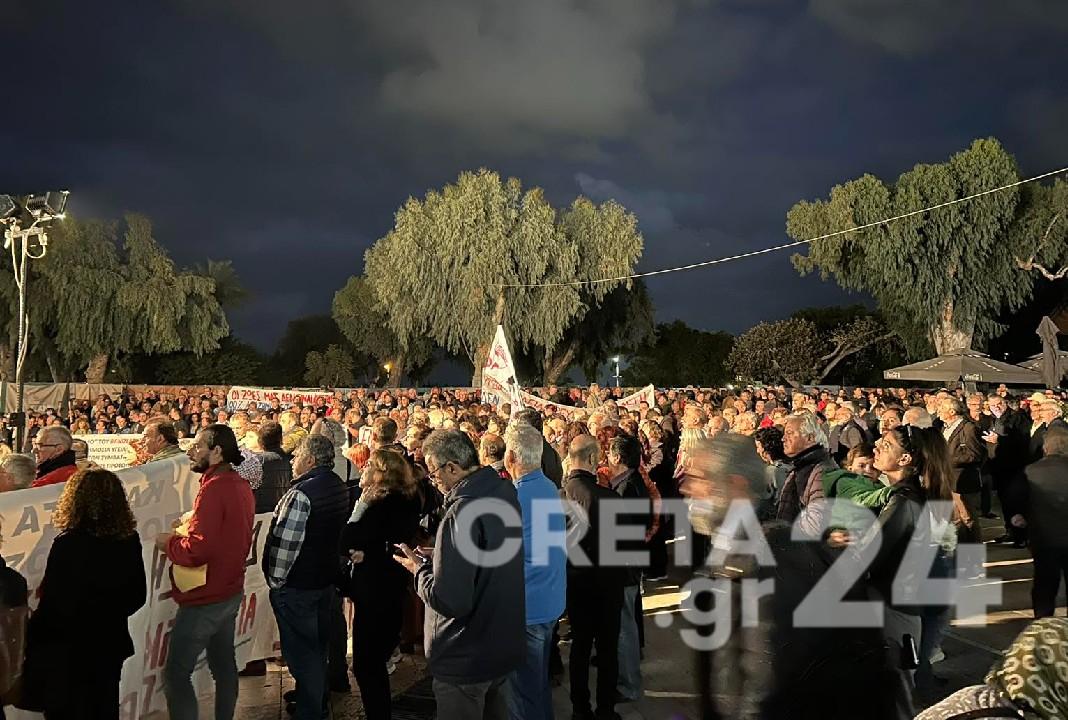 Πλήθος γιατρών, νοσηλευτών, σωματείων και φορέων και από τους τέσσερις νομούς του νησιού έχει συγκεντρωθεί στην Πλατεία Ελευθερίας, αναδεικνύοντας τις ανάγκες για ενίσχυση του ανθρώπινου δυναμικού και τη βελτίωση των συνθηκών εργασίας.