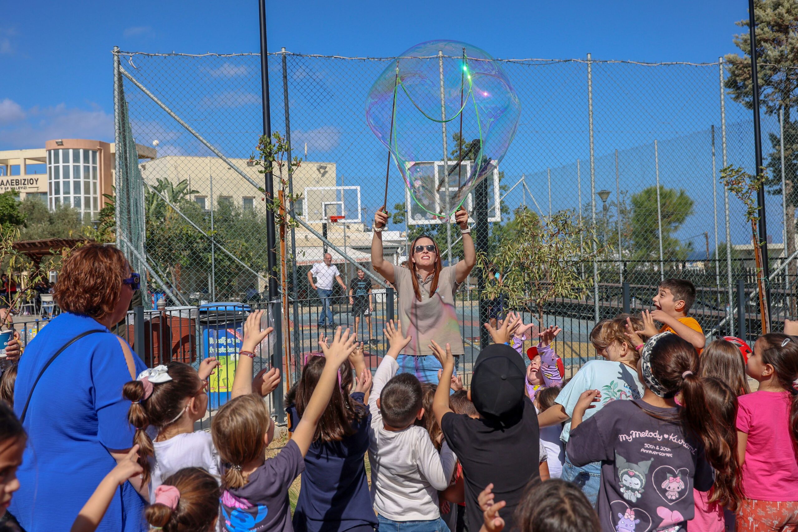 Μετά την τελετή των εγκαινίων, παιδιά και γονείς απόλαυσαν μια όμορφη γιορτή με εκπλήξεις, παιχνίδια και δημιουργικές δραστηριότητες, που γέμισαν την πλατεία με γέλια, μουσική και χαρά