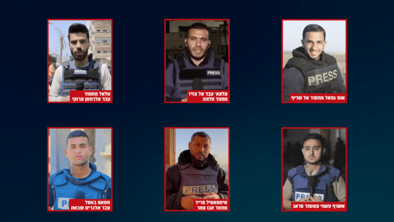 Οι IDF ανακοινώνουν ότι λόγω πληροφοριών που ανακτήθηκαν από τη Λωρίδα της Γάζας κατά τη διάρκεια στρατιωτικών επιχειρήσεων, μπορούν να αποκαλύψουν ότι οι Anas Al-Sharif, Ala’ Salama, Hossam Shbat, Ashraf Al-Sarraj, Ismail Abu Amr και Talal Al-Aruki είναι όλοι συνδεδεμένοι με τις στρατιωτικές πτέρυγες είτε της Χαμάς είτε της PIJ.