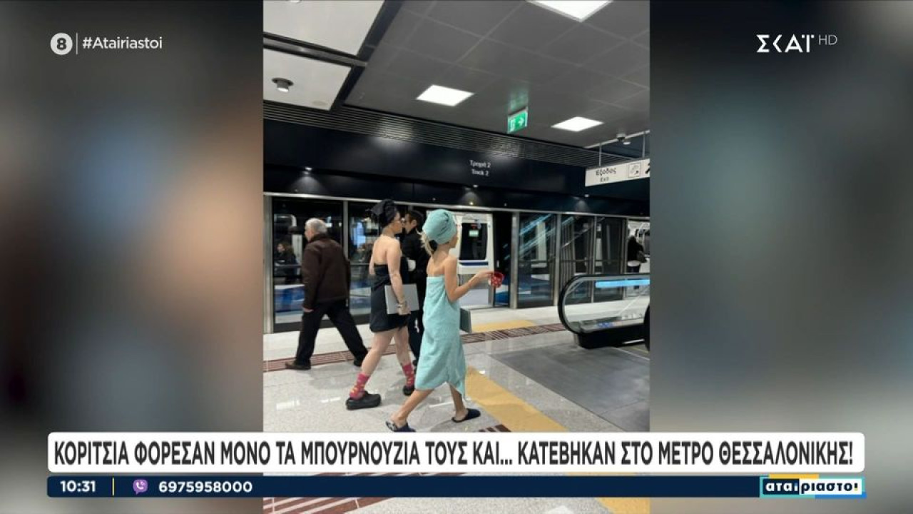 Δυο κορίτσια έβαλαν μόνο τα μπουρνούζια τους και κατέβηκαν με μια πετσέτα στο κεφάλι στο Μετρό Θεσσαλονίκης.