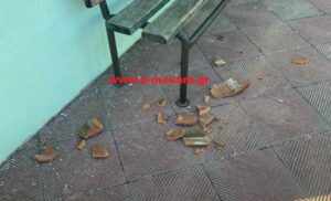 Σύμφωνα με το e-mesara.gr, τη νύχτα με το δυνατό αέρα έπεσαν κεραμίδια από τη στέγη στην αυλή του σχολείου.