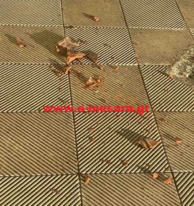 Σύμφωνα με το e-mesara.gr, τη νύχτα με το δυνατό αέρα έπεσαν κεραμίδια από τη στέγη στην αυλή του σχολείου.