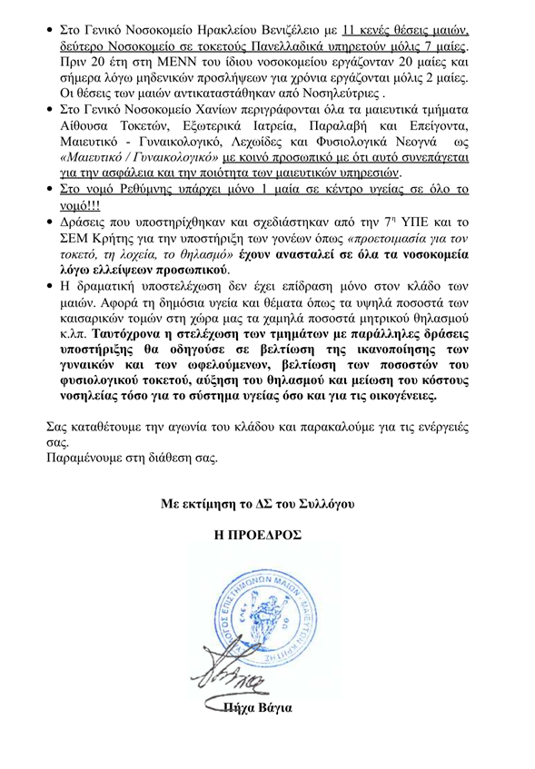 Θέμα: Να γίνουν άμεσα όλες οι απαραίτητες μόνιμες προσλήψεις μαιών και μαιευτών σε όλα τα νοσοκομεία της Κρήτης