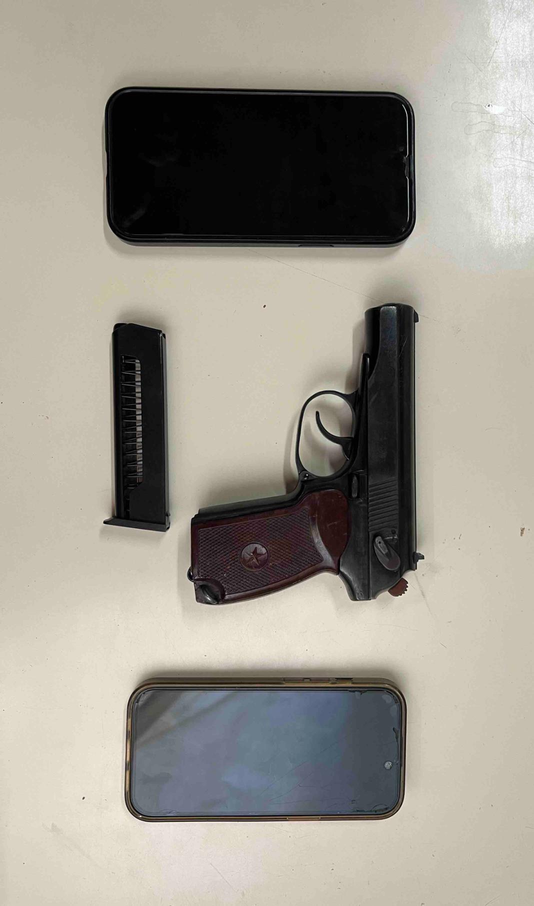 Σε έρευνες που ακολούθησαν βρέθηκε και κατασχέθηκε στην οικία του 30χρονου πιστόλι με το γεμιστήρα του και δύο φυσίγγια, ενώ επιπλέον κατασχέθηκαν δύο κινητά τηλέφωνα.