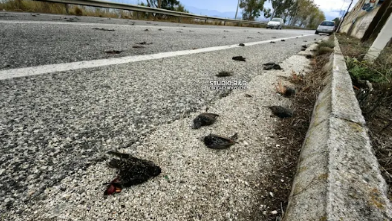 Θλίψη και αποτροπιασμό προκαλούν οι εικόνες με εκατοντάδες νεκρά πουλιά που εντοπίστηκαν στην παραλιακή οδό Ναυπλίου – Νέας Κίου στο ύψος του παλιού εργοστασίου “Πελαργός” στην Αργολίδα, το μεσημέρι της Πέμπτης.
