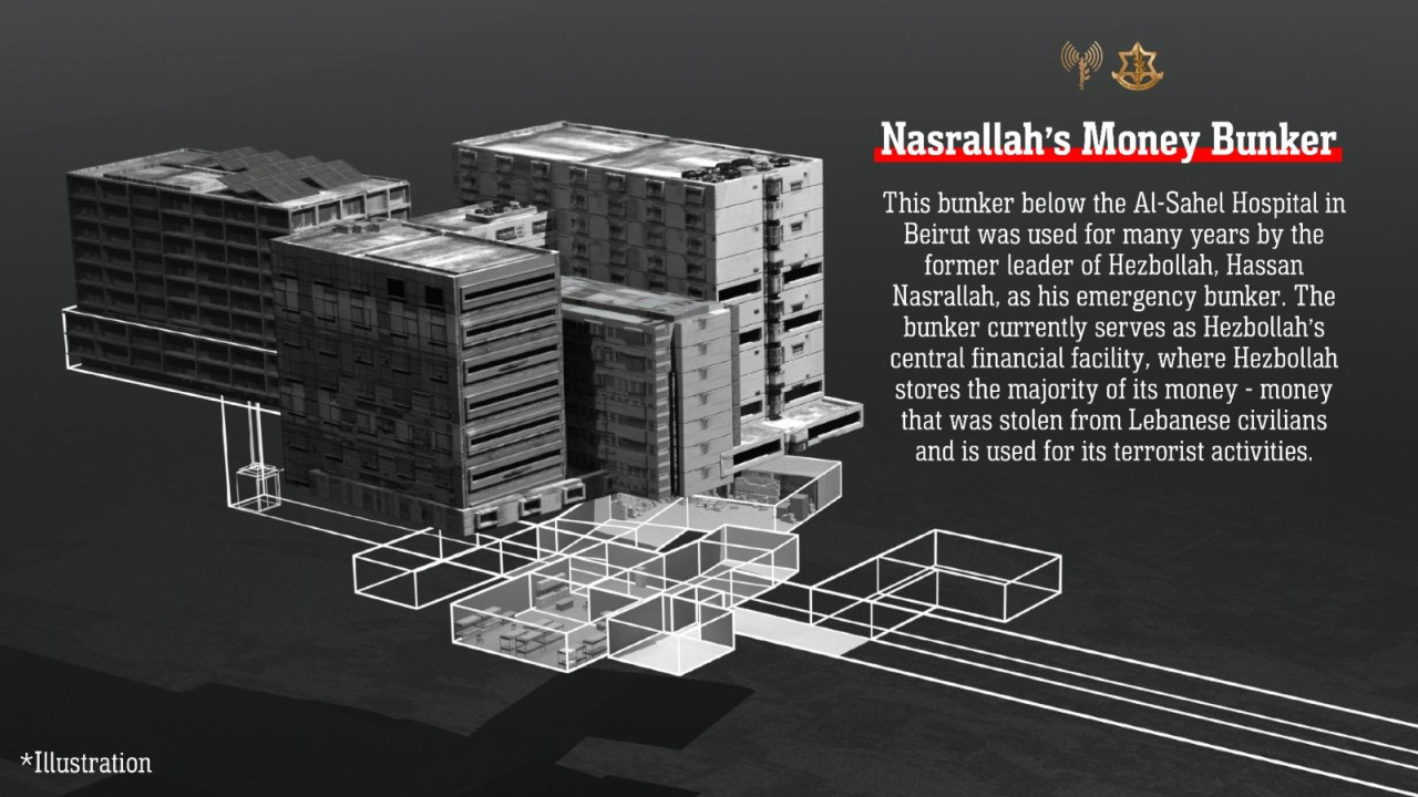 Εκπρόσωπος των IDF, αντιναύαρχος Daniel Hagari: «Υπάρχουν εκατομμύρια δολάρια σε χρυσό και μετρητά στο καταφύγιο του Hassan Nasrallah. Πού βρίσκεται το καταφύγιο; Ακριβώς κάτω από το νοσοκομείο Al-Sahel – στην καρδιά της Βηρυτού».