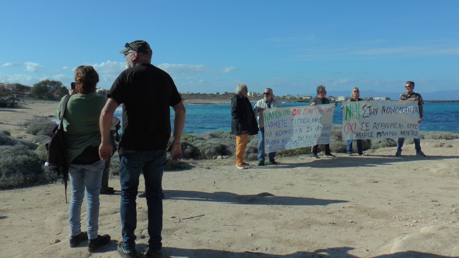 Σε νέα κινητοποίηση προχώρησαν την Κυριακή, στην παραλία της Παχιάς Άμμου, στον Σταυρό Ακρωτηρίου, πολίτες που αντιδρούν στην δημιουργία αντλιοστασίου στο σημείο.