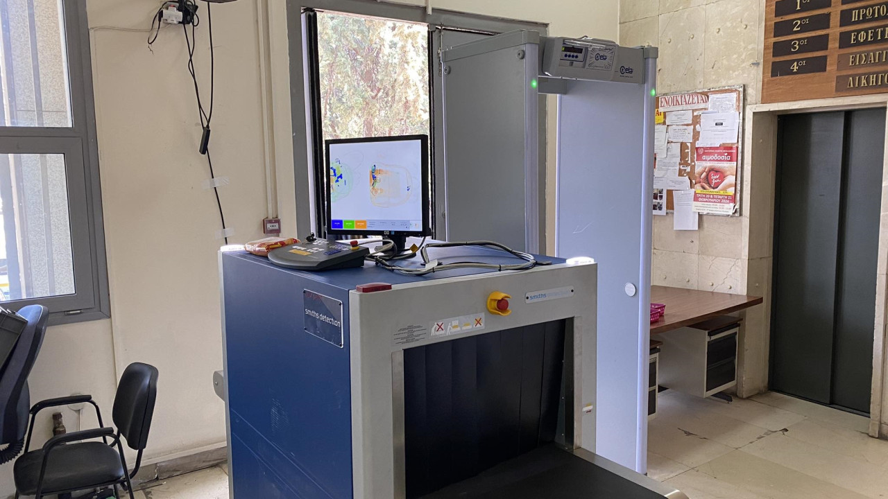 Η νέα μαγνητική πύλη ήρθε να προστεθεί στις δύο υπάρχουσες, με τις αντίστοιχες συσκευές ελέγχου ακτίνων Χ, που λειτουργούν -συνήθως εκ περιτροπής- στην κεντρική είσοδο του κτηρίου.