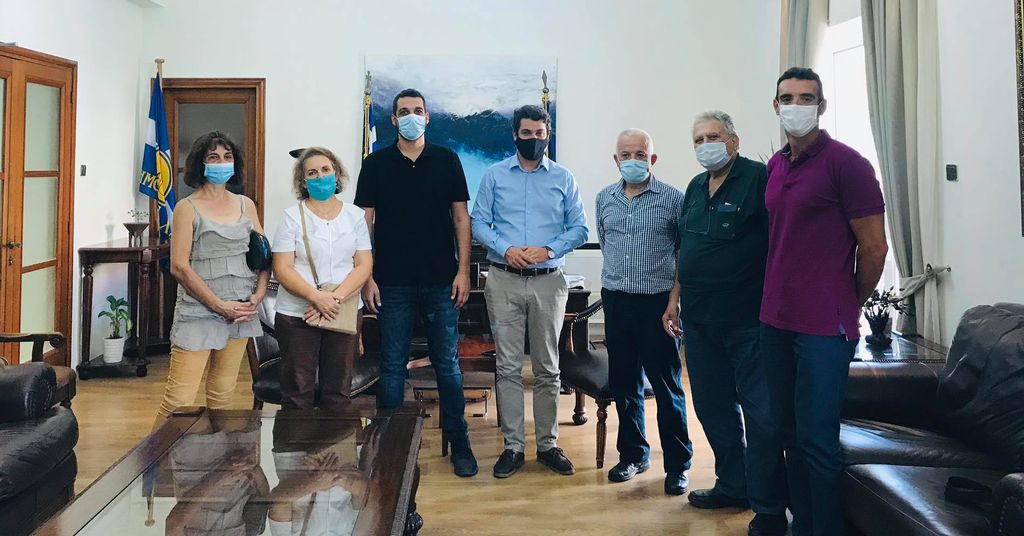 Συνάντηση γνωριμίας με τον Δήμαρχο Χανίων, Παναγιώτη Σημανδηράκη, είχαν σήμερα, Παρασκευή 18/9/2020, τέσσερις νεοπροσληφθέντες στην επιχείρηση “ΚΥΔΩΝ ΔΗΜΟΤΙΚΗ Α.Ε.”, μέσω του προγράμματος Απασχόλησης Μακροχρόνια Ανέργων, ηλικίας 55+, του Ο.Α.Ε.Δ. Στη συνάντηση παρευρέθηκαν επίσης ο Πρόεδρος, Μιχάλης Καλογριδάκης, και ο Διευθύνων Σύμβουλος της επιχείρησης, Χαράλαμπος Λίτος. Η απασχόληση των εργαζομένων θα διαρκέσει 12 μήνες, με δυνατότητα επέκτασης για επιπλέον 12 μήνες.