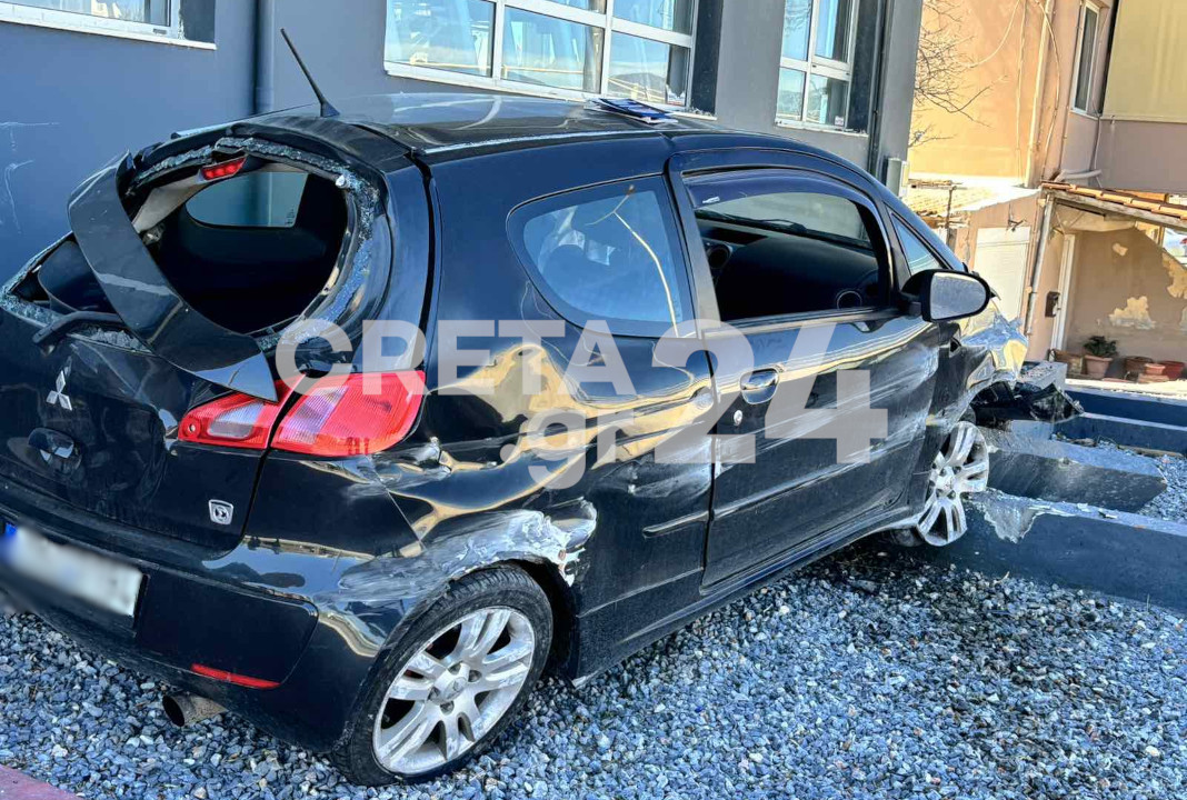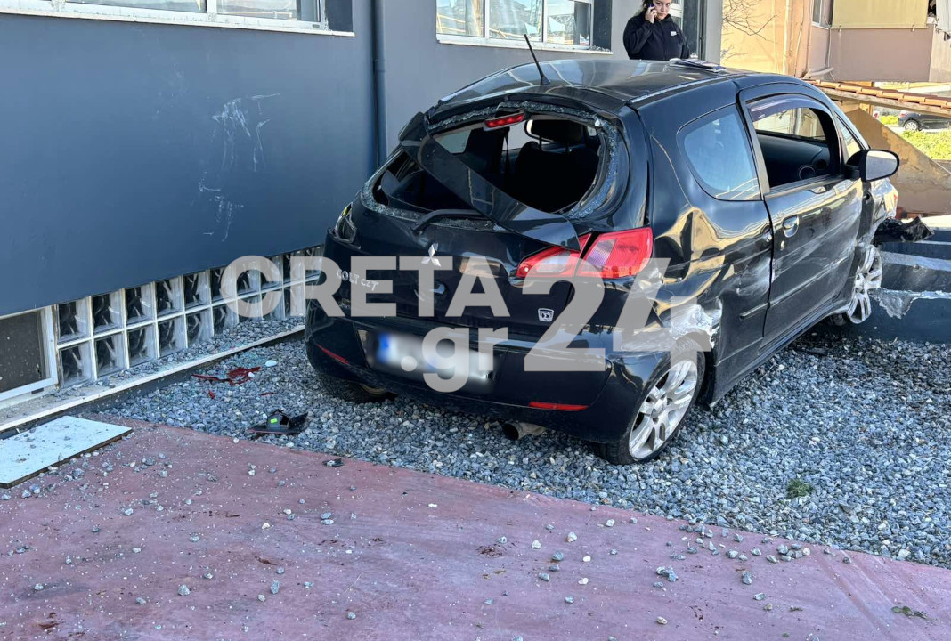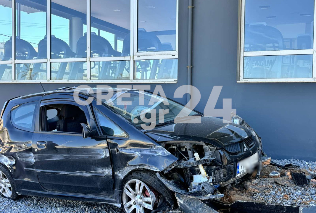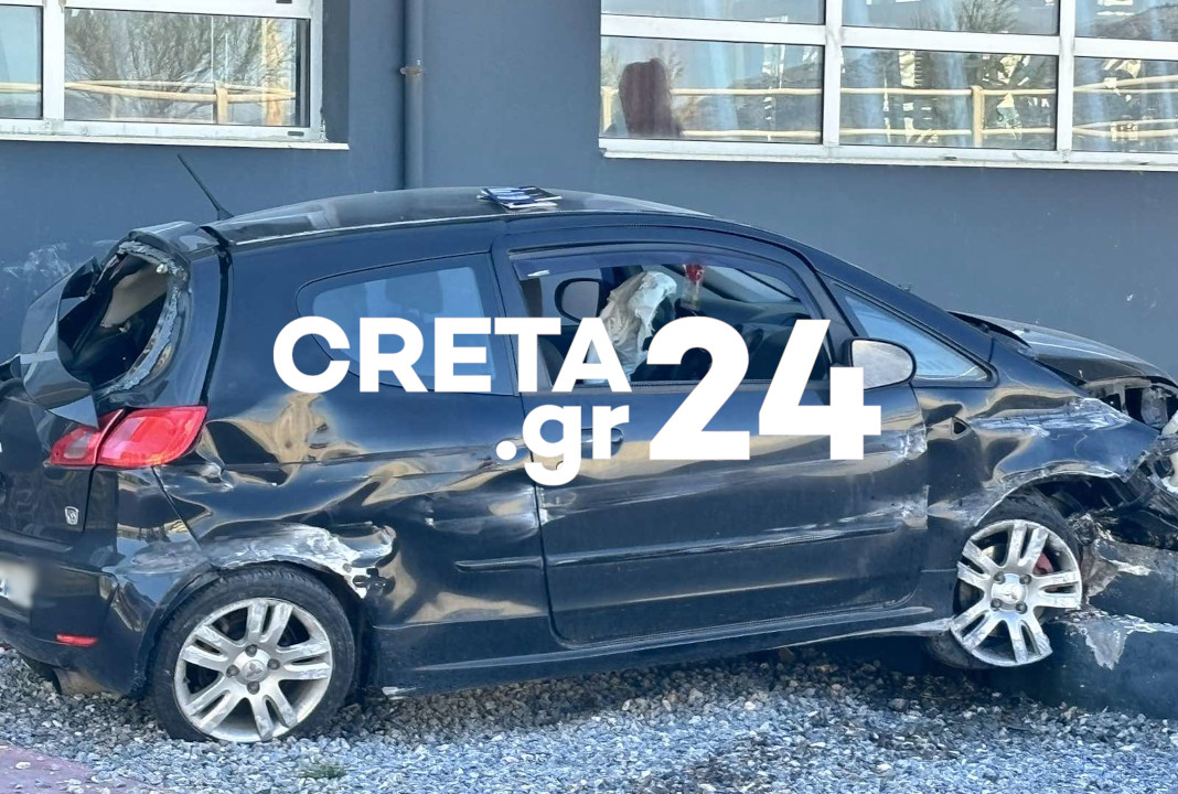 Ένα ΙΧ αυτοκίνητο που κινούνταν στο ρεύμα προς το Παγκρήτιο Στάδιο, κάτω από αδιευκρίνιστες συνθήκες, εξετράπη της πορείας του πέρασε στο αντίθετο ρεύμα και προσέκρουσε στον τοίχο γυμναστηρίου.