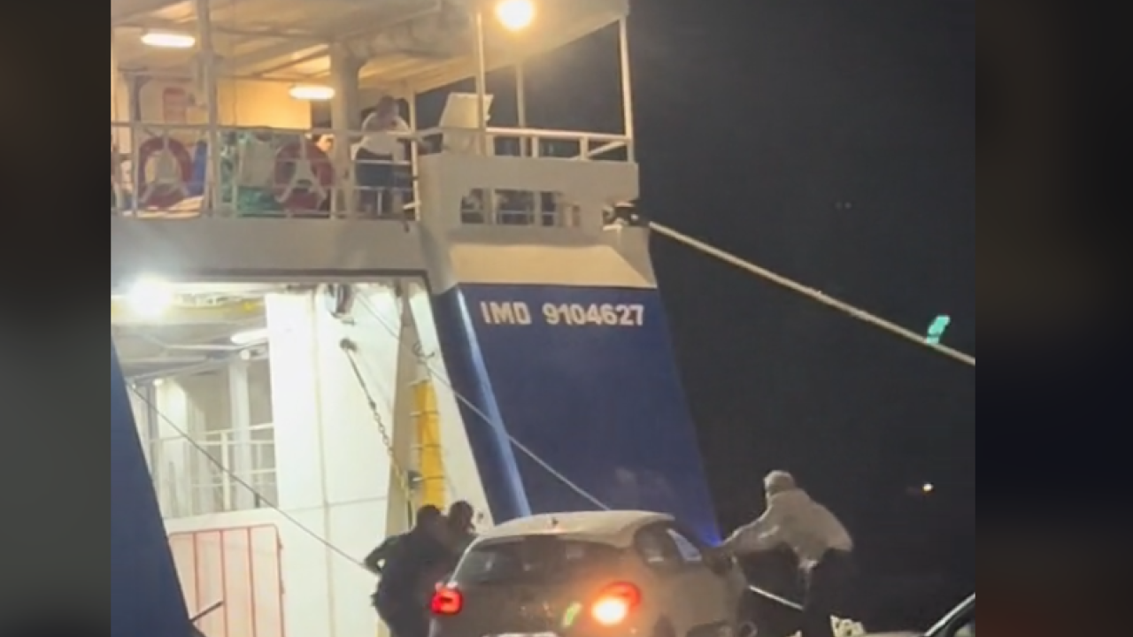 Βίντεο στα μέσα κοινωνικής δικτύωσης από το λιμάνι της Άνδρου δείχνουν το αυτοκίνητο να προσπαθεί να επιβιβαστεί και την μπουκαπόρτα να σηκώνεται, με αποτέλεσμα αυτό να ισορροπεί μεταξύ αέρα και εδάφους.