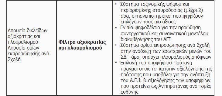 - Το σύστημα ταξινομικής ψήφου και περιορισμένης σταυροδοσίας στην ανάδειξη εσωτερικών μελών του Συμβουλίου Διοίκησης διασφαλίζει ένα πλουραλιστικό και αξιοκρατικό όργανο στο οποίο θα συμμετέχουν Μέλη ΔΕΠ από διαφορετικές σχολές.