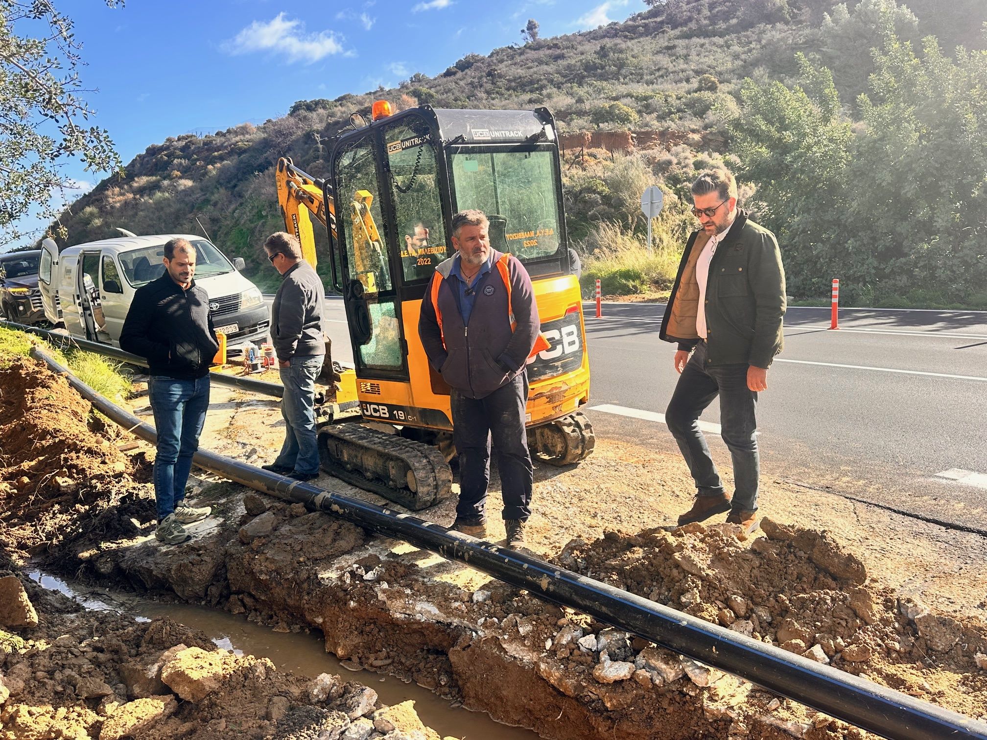 Στις εργασίες αντικατάστασης του αγωγού ύδρευσης που μεταφέρει νερό από το Φόδελε προς την Αγία Πελαγία και τη Λυγαριά βρέθηκε ο Δήμαρχος Μαλεβιζίου, Μενέλαος Μποκέας, συνοδευόμενος από τον Αντιπρόεδρο της ΔΕΥΑ Μαλεβιζίου, Γιάννη Μαρή.