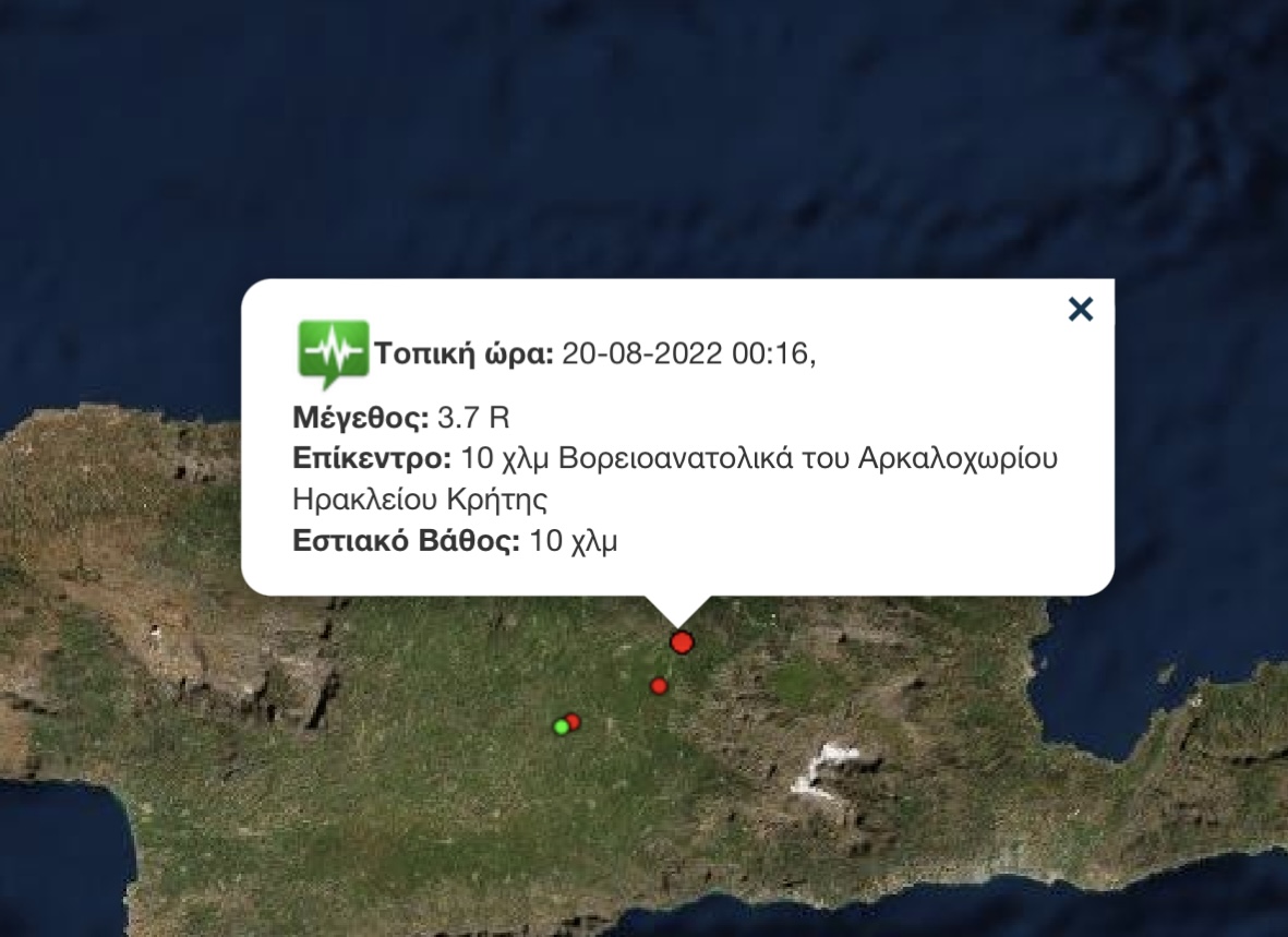 The post Νέος σεισμός στο Αρκαλοχώρι – Ιδιαίτερα αισθητός και στο Ηράκλειο appeared first on CRETA24.