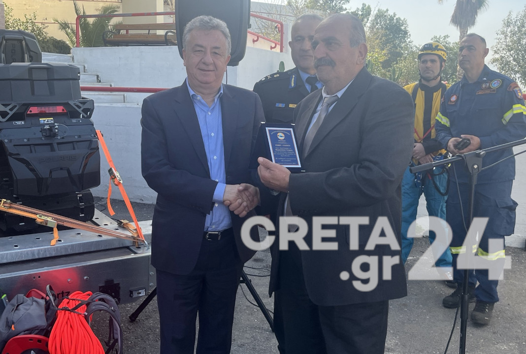 Στην τελετή για την παράδοση υλικοτεχνικού εξοπλισμού στην ΕΜΑΚ παραβρέθηκε σήμερα ο Περιφερειάρχης Κρήτης Σταύρος Αρναουτάκης.