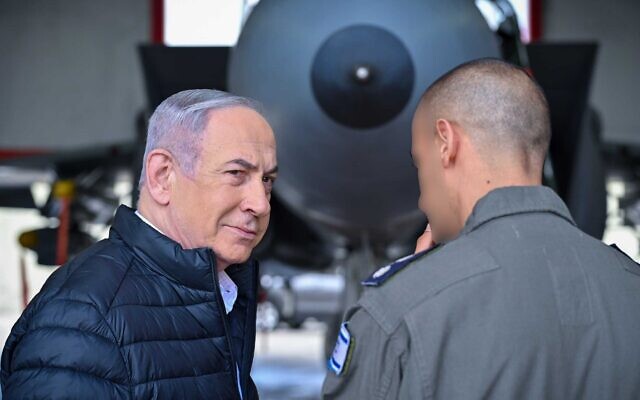 «Βρισκόμαστε σε δύσκολους καιρούς. Βρισκόμαστε στη μέση ενός πολέμου στη Γάζα που συνεχίζεται με πλήρη ισχύ. Επιπλέον, συνεχίζουμε τις αδιάκοπες προσπάθειες για την επιστροφή των ομήρων μας, αλλά προετοιμαζόμαστε επίσης για προκλήσεις από άλλα μέτωπα», ανέφερε χαρακτηριστικά ο Νετανιάχου στους πιλότους καθώς επισκέφτηκε μια βάση F-15.
