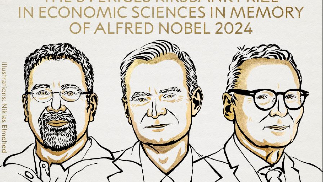 Στους οικονομολόγους Ντάρον Ατσέμογλου, Σάιμον Τζόνσον και Τζέιμς Ρόμπινσον, «για μελέτες σχετικά με το πώς διαμορφώνονται οι θεσμοί και επηρεάζουν την ευημερία», απονέμεται το φετινό Νόμπελ Οικονομίας, σύμφωνα με ανακοίνωση της Σουηδικής Βασιλικής Ακαδημίας Επιστημών.