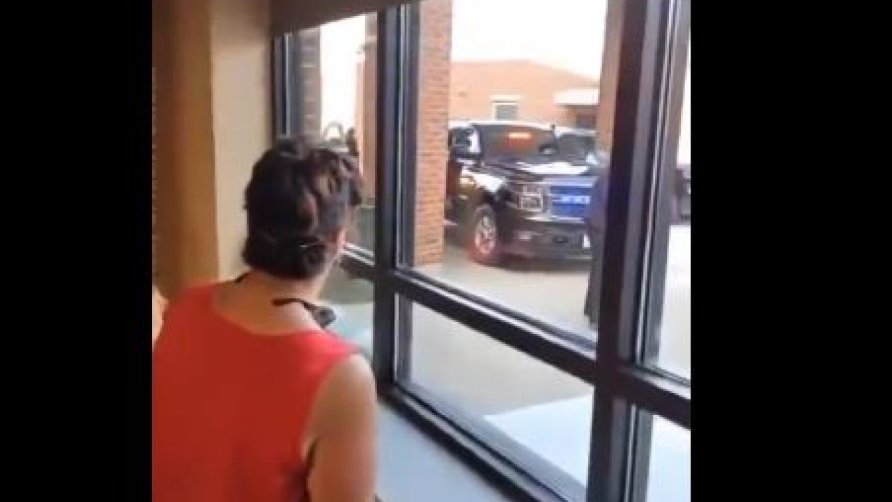 Πρόκειται για τη στιγμή που η αυτοκινητοπομπή που μετέφερε τον πρώην πρόεδρο φτάνει στο νοσοκομείο με το προσωπικό των μυστικών υπηρεσιών να αποβιβάζεται πρώτο από τα οχήματα και να επιτηρεί τον χώρο.