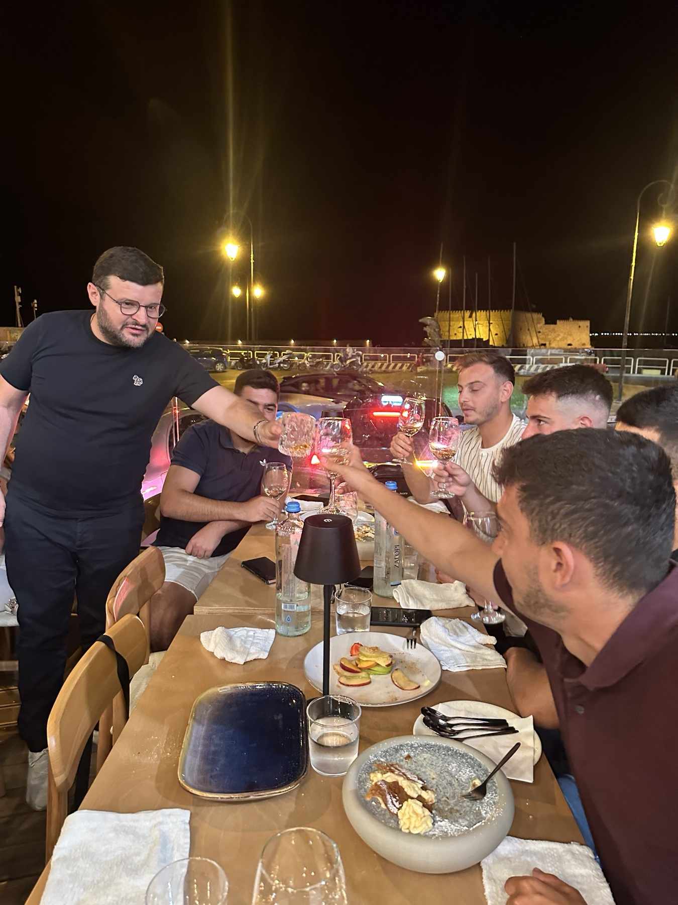 Με φόντο το φωτισμένο ιστορικό φρούριο του Κούλε, ο αντιπρόεδρος του Ερασιτέχνη ΟΦΗ, Νίκος Τσαμπουράκης, παρέθεσε δείπνο, στους προπονητές της ακαδημίας ποδοσφαίρου του συλλόγου, για να τους συγχαρεί για την σταθερά ανοδική πορεία που έχει το τμήμα, καθώς αγγίζει σήμερα, τα 500 παιδιά.