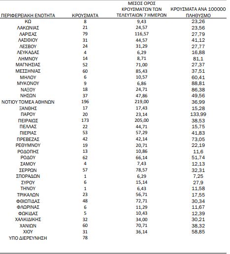 - 37 κρούσματα στην Π.Ε. Νήσων