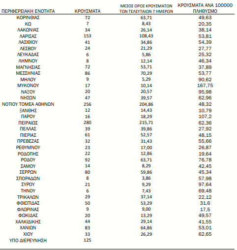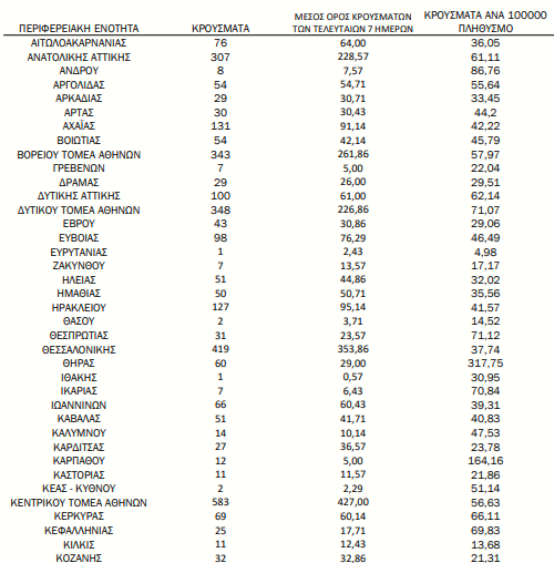 Αναλυτικότερα τα κρούσματα στις περιφερειακές ενότητες που ανήκουν στην Αττική: