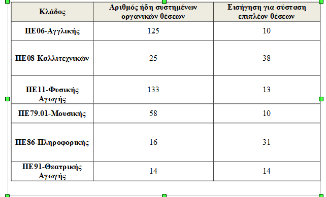 Ο Διευθυντής Πρωτοβάθμιας Εκπαίδευσης Ηρακλείου κ. Μανώλης Μπελαδάκης, λαμβάνοντας υπόψιν τις αυξημένες ανάγκες της Διεύθυνσης Πρωτοβάθμιας Εκπαίδευσης Ηρακλείου σε όλους τους κλάδους, εισηγήθηκε τη σύσταση των παρακάτω οργανικών θέσεων: