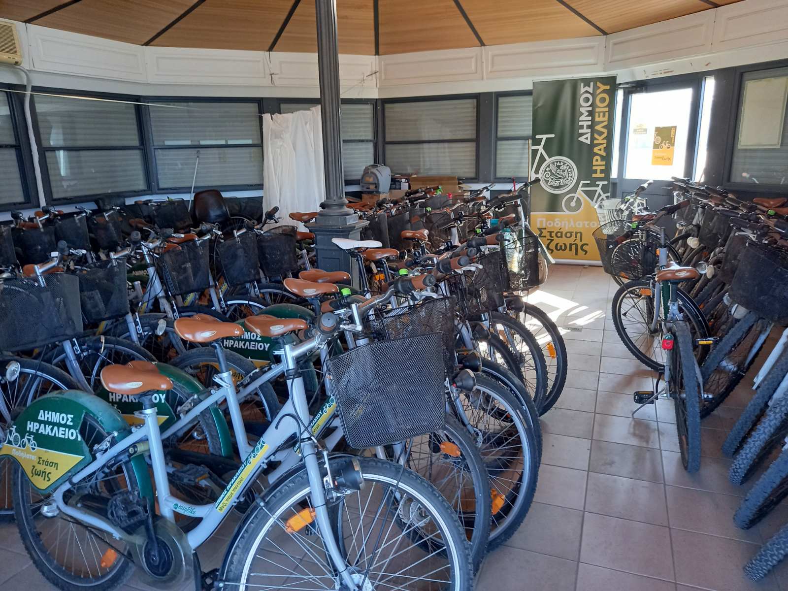 Σύμφωνα με τον Αντιδήμαρχο Αθλητισμού και πρόεδρο της ΑΑΗ αε ΟΤΑ Γιάννη Τσαπάκη , ο Δήμος Ηρακλείου έχει δημιουργήσει σε δύο σημεία της πόλης σταθμούς παραχώρησης ποδηλάτων για όσους θέλουν να προσεγγίσουν την πόλη και να κάνουν τη βόλτα τους με ένα ποδήλατο. Οι σταθμοί αυτοί βρίσκονται, ο πρώτος στην Πύλη του Ιησού όπου γραφείο εξυπηρέτησης του Δήμου έχει στη διάθεση του κοινού 10 ποδήλατα ενώ ο δεύτερος σταθμός έχει έδρα την περιοχή του παλιού Καράβολα στην παραλιακή ζώνη του Ηρακλείου, με 35 διαθέσιμα ποδήλατα. Το ωράριο λειτουργίας των σταθμών για τη χρήση ποδηλάτων έχει ως εξής: