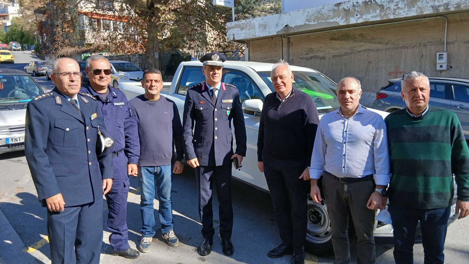 Η παράδοση του οχήματος πραγματοποιήθηκε σήμερα από τον Δήμαρχο Βιάννου κ. Παύλο Μπαριτάκη, παρουσία του Γενικού Αστυνομικού Διευθυντή Περιφέρειας Κρήτης, Υποστράτηγου κ. Νίκου Σπυριδάκη.