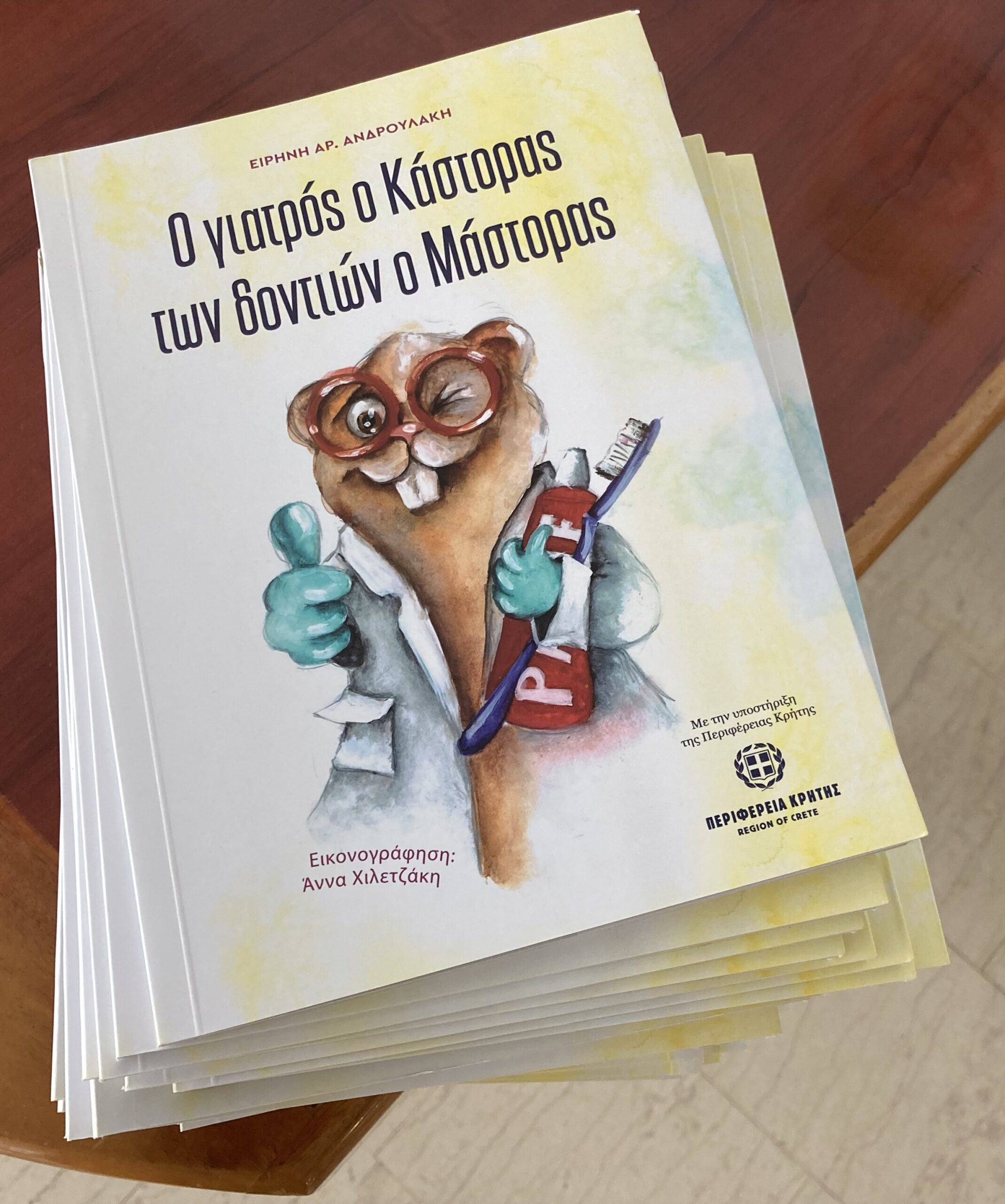 Ειδικότερα στις δράσεις αυτές εντάσσεται και η επίσκεψη που πραγματοποίησε η Κινητή Οδοντιατρική Μονάδα της Περιφέρειας Κρήτης στο κέντρο ειδικών παιδιών «Άγιος Σπυρίδωνας». Κατά τη διάρκεια της έγινε οδοντιατρικός έλεγχος στους μαθητές από τον οδοντίατρο της μονάδας Νίκο Βαρούχα, παρουσιάστηκε από την ηθοποιό Έφη Δράκου το θεατρικό διαδραστικό δρώμενο που είναι βασισμένο στο παιδικό παραμύθι της συγγραφέως Ειρήνης Ανδρουλάκη με τίτλο «Ο Γιατρός ο Κάστορας των δοντιών ο Μάστορας», παράλληλα με το εικονογραφημένο παραμύθι – βιβλίο «Ο Γιατρός ο Κάστορας των δοντιών ο Μάστορας» στους μαθητές δόθηκαν μπάλες για τις αθλητικές τους δραστηριότητες.