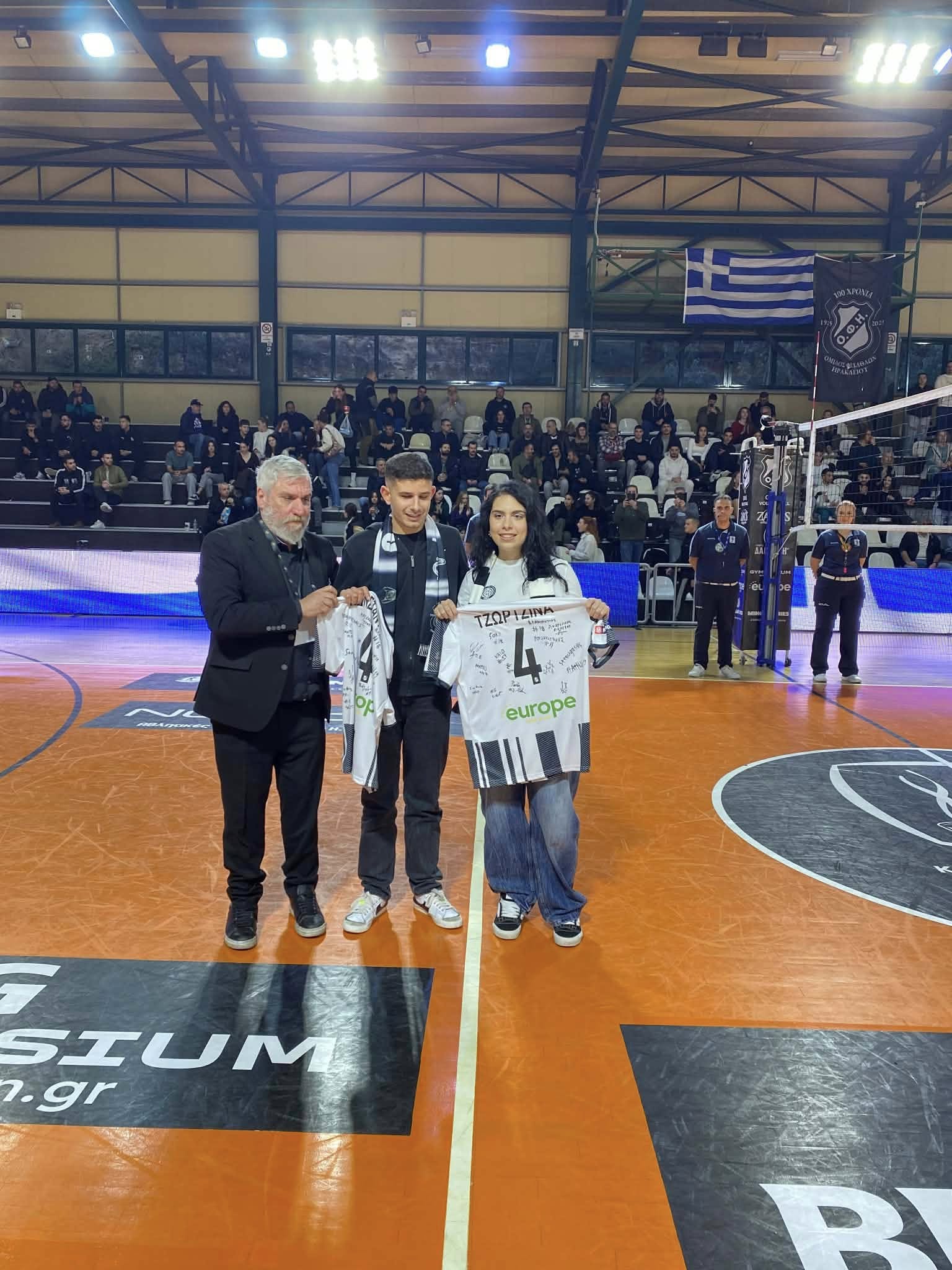 Μια σπουδαία στιγμή, πριν την έναρξη του αγώνα ΟΦΗ-Ολυμπιακός, στο κλειστό γυμναστήριο του Βαρδινογιάννειου Αθλητικού Κέντρου, για την 8η αγωνιστική της Volley League.