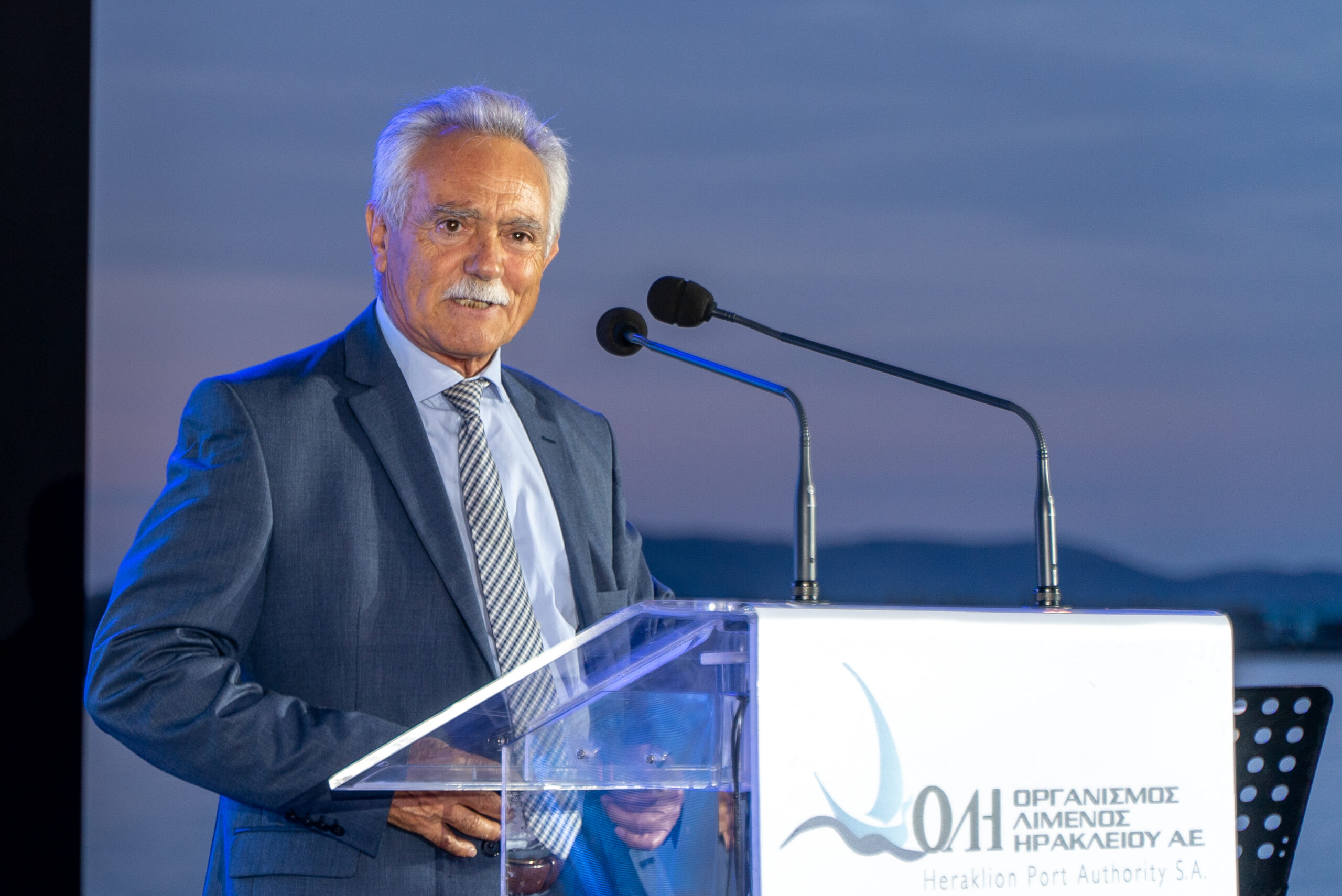 Ο Γενικός Γραμματέας Αιγαίου και Νησιωτικής Πολιτικής κ.Μανώλης Κουτουλάκης αφού έδωσε τα εύσημα στην Διοίκηση του ΟΛΗ, ανέφερε ότι το Λιμάνι του Ηρακλείου ζεί μια διαφορετική ανάπτυξη την οποία οφείλουμε να αναγνωρίσουμε. Στην αλυσίδα αυτής της ανάπτυξης τον σημαντικό κρίκο αποτελούν οι χρήστες του λιμένος, η αλυσίδα αυτή παράγει θέσεις εργασίας, εισόδημα και στο τέλος της ημέρας κάνει ένα λιμάνι λειτουργικό, αποδοτικό όχι μόνο με οικονομικούς όρους. Αυτό που κατάφερε το λιμάνι του Ηρακλείου με ενισχυμένο το επενδυτικό του πλάνο ήταν να επανασυστηθεί με την πόλη του Ηρακλείου, να επανασυστηθεί με την θάλασσα και αυτή η σχέση να είναι διαλεκτική αποδοτική και όχι ξένο σώμα μέσα στο χώρο. Η Διοίκηση του ΟΛΗ επέδειξε σημαντικά αποτελέσματα στην δυναμική ανάπτυξη που οφείλεται όχι μόνον στην εργατικότητα των εργαζομένων αλλά και στην αντίληψη της Διοίκησης στις νέες προκλήσεις. Ως Υπουργείο Ναυτιλίας τόνισε ο Γενικός Γραμματέας στηρίξαμε και θα στηρίζουμε την ένταξη του λιμένα στην πράσινη μετάβαση, τον σεβασμό στην αειφορία, την προσήλωση στην εξωστρέφεια και δίνουμε μεγάλη βαρύτητα στις συνέργειες των επιχειρήσεων και στα επενδυτικά προγράμματα.